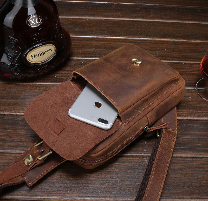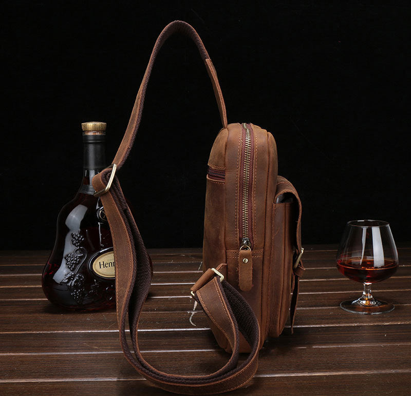 Design: Leather Mens Cool Sling Bag Crossbody Bag Chest Bag for men
