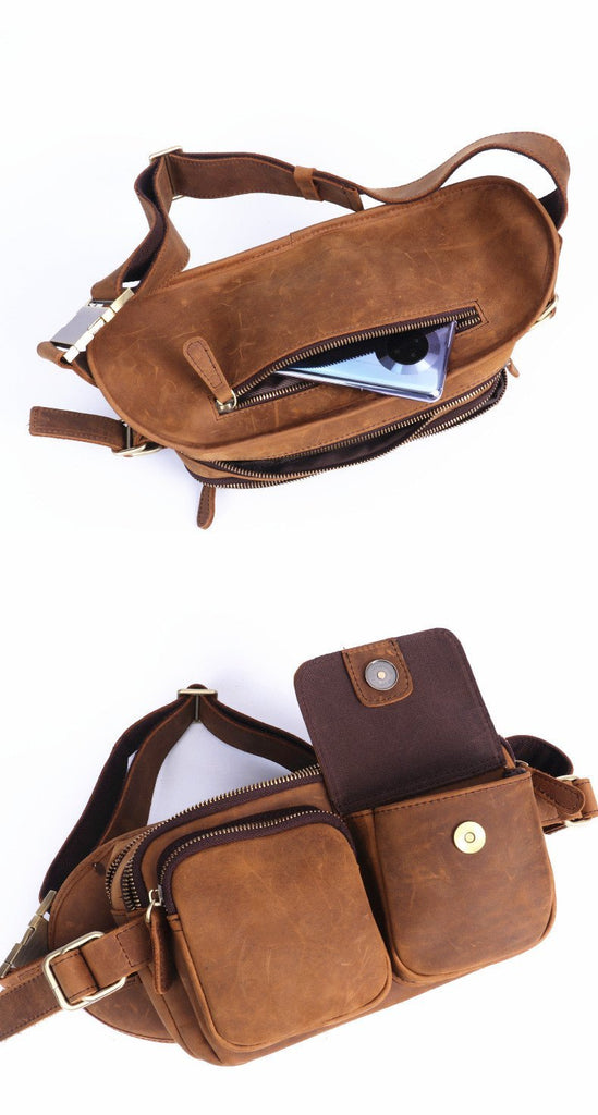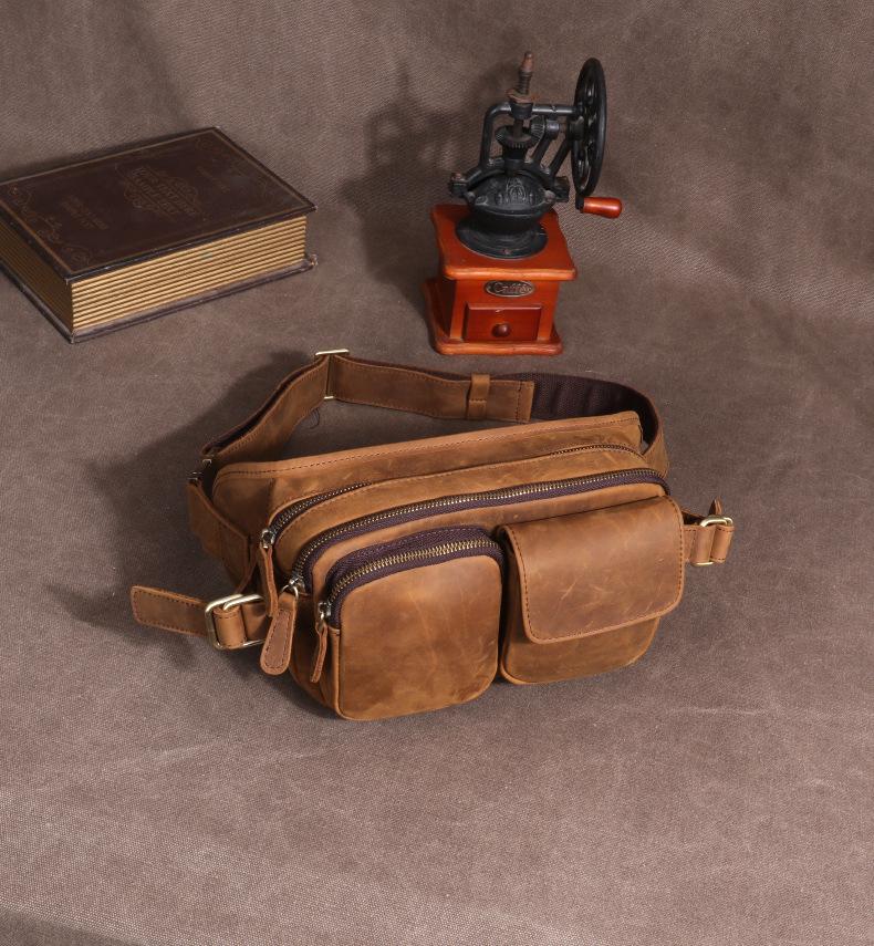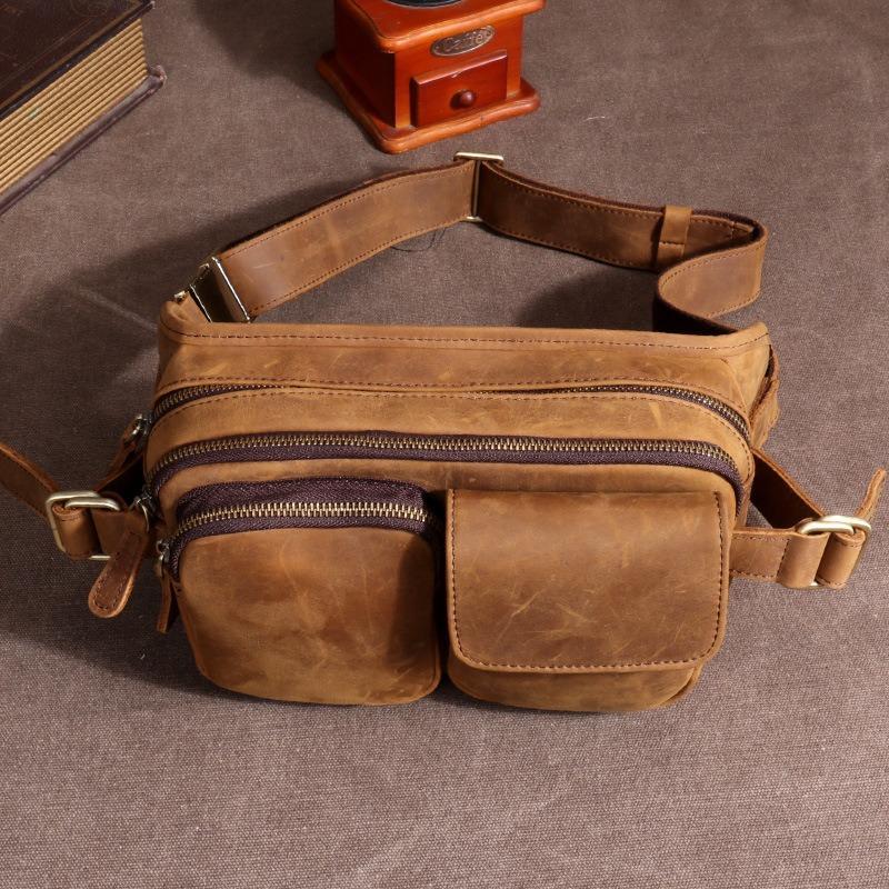 Style: Leather Mens Fanny Packs Casual Belt Bag Cool Waist Bag Fanny Bag For Men