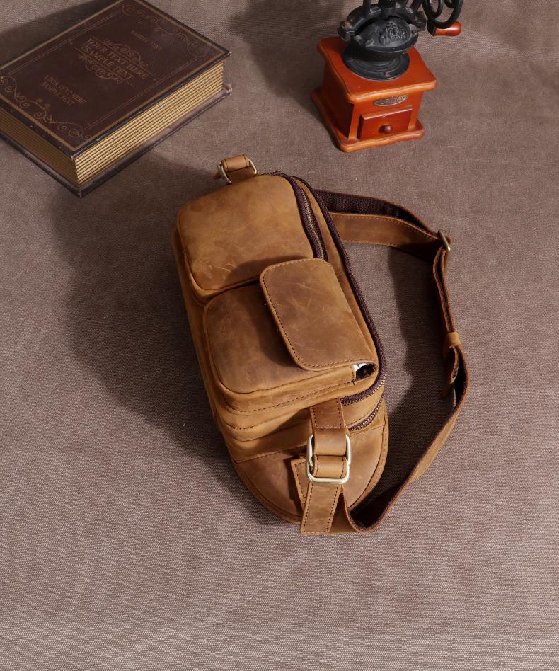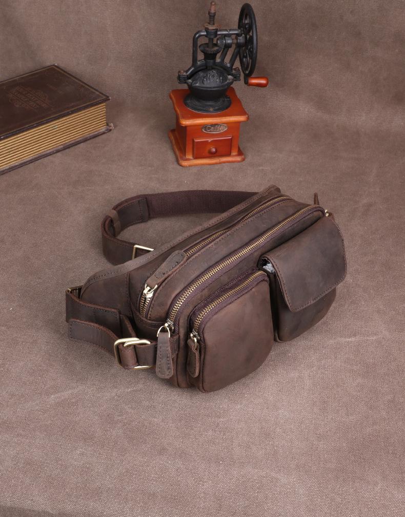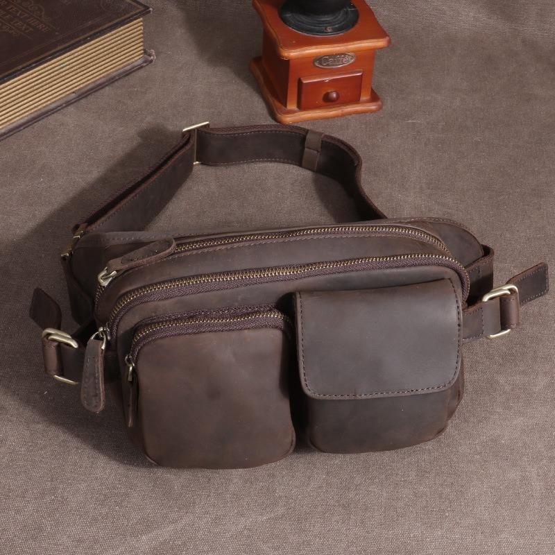 Leather Mens Fanny Packs Casual Belt Bag Cool Waist Bag Brown Fanny Bag For Men