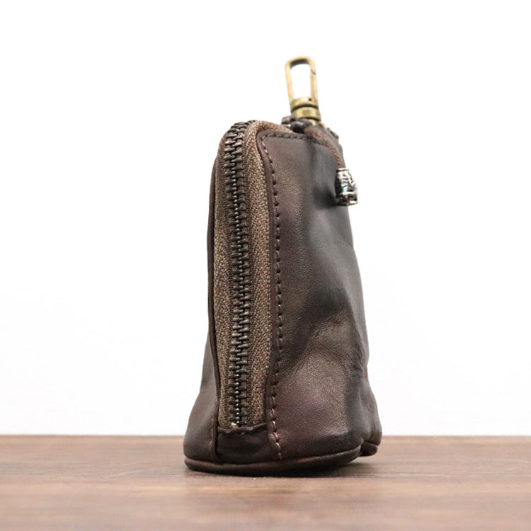 Leather Men's Key Wallet Car Key Cases With Belt Clip Zip Leather Key Holder For Men