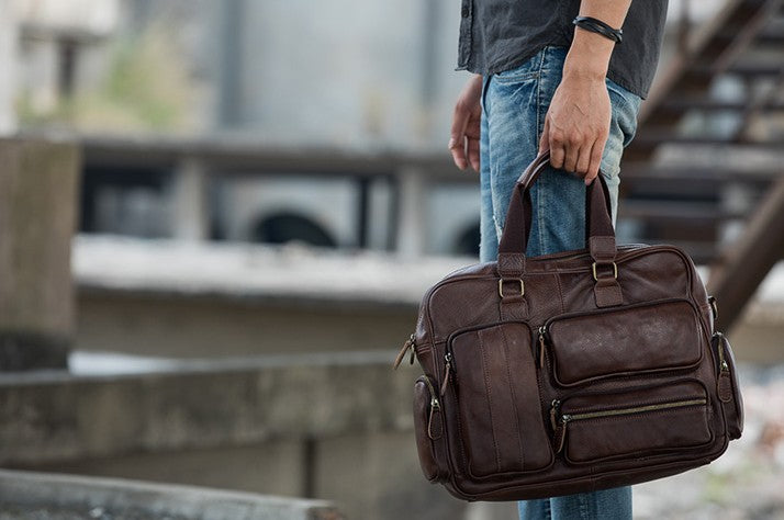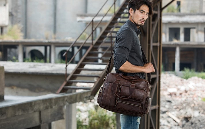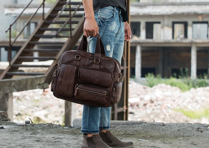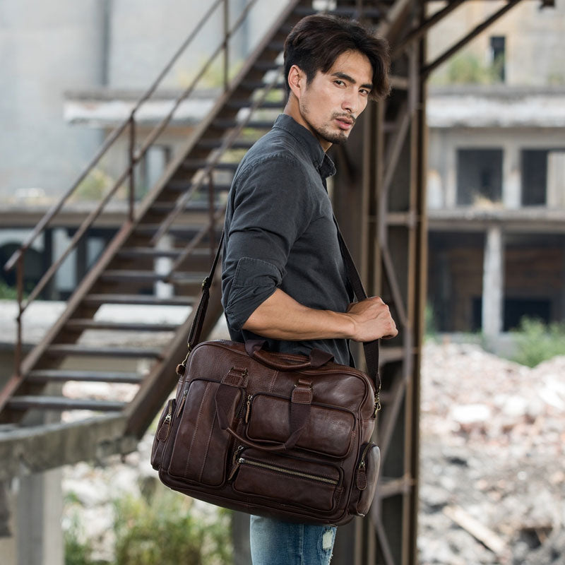 Design: Leather Mens Large Briefcase Work Bag Travel Bag Business Bag for Men