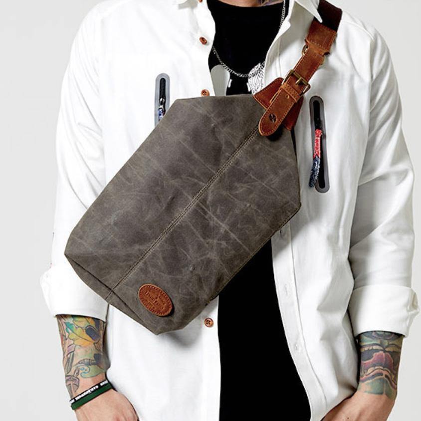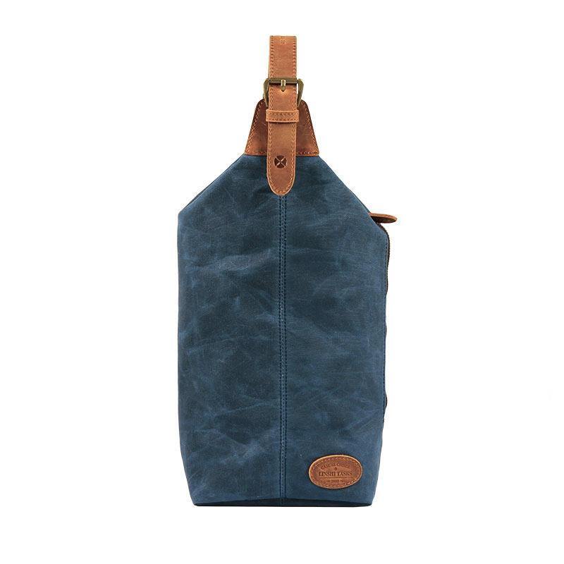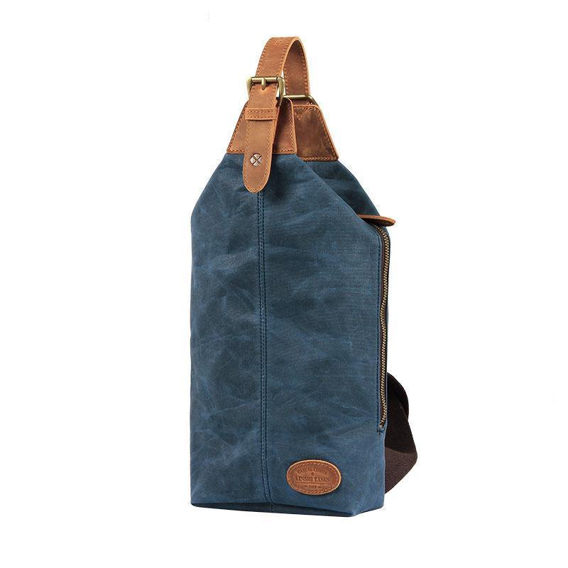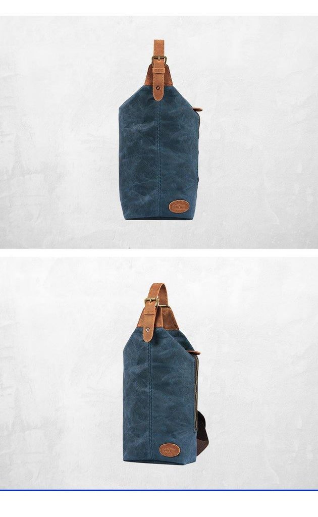Waxed Canvas Sling Backpack Men's Sling Bag Navy Blue Chest Bag Waxed Canvas One shoulder Backpack For Men