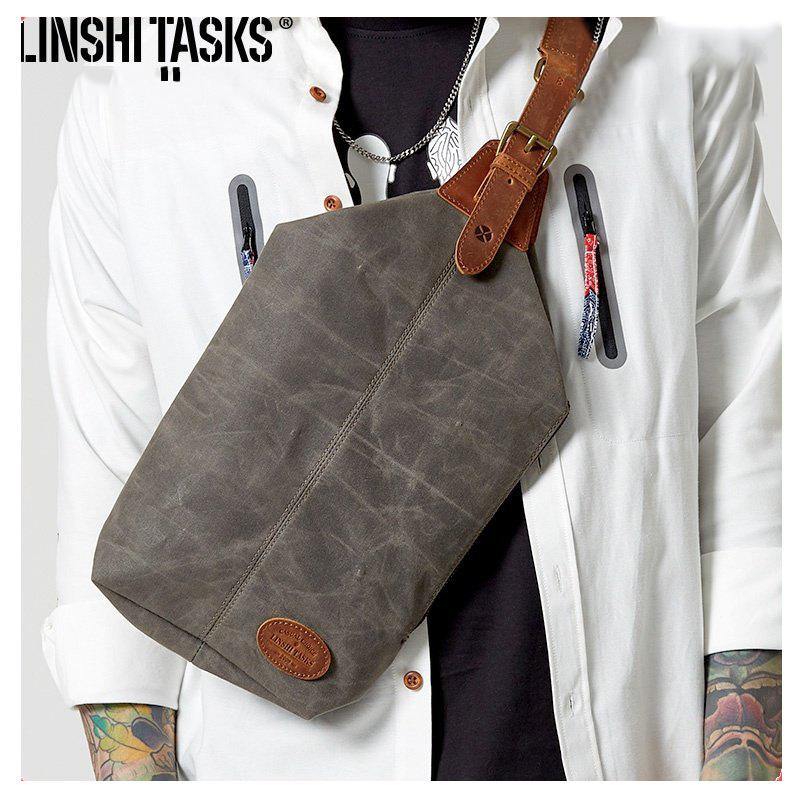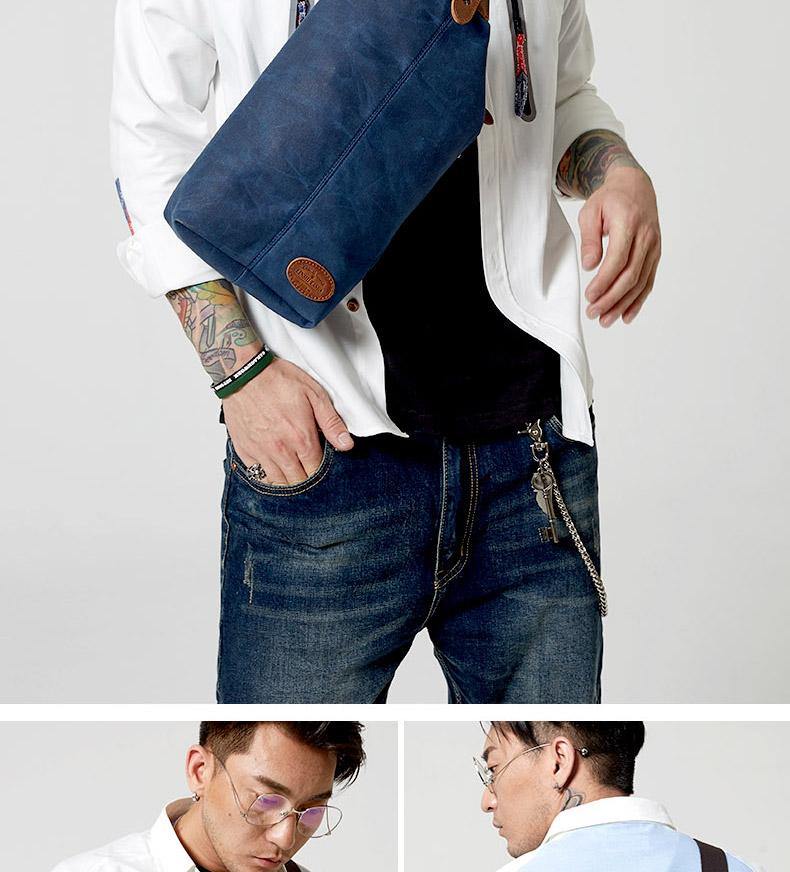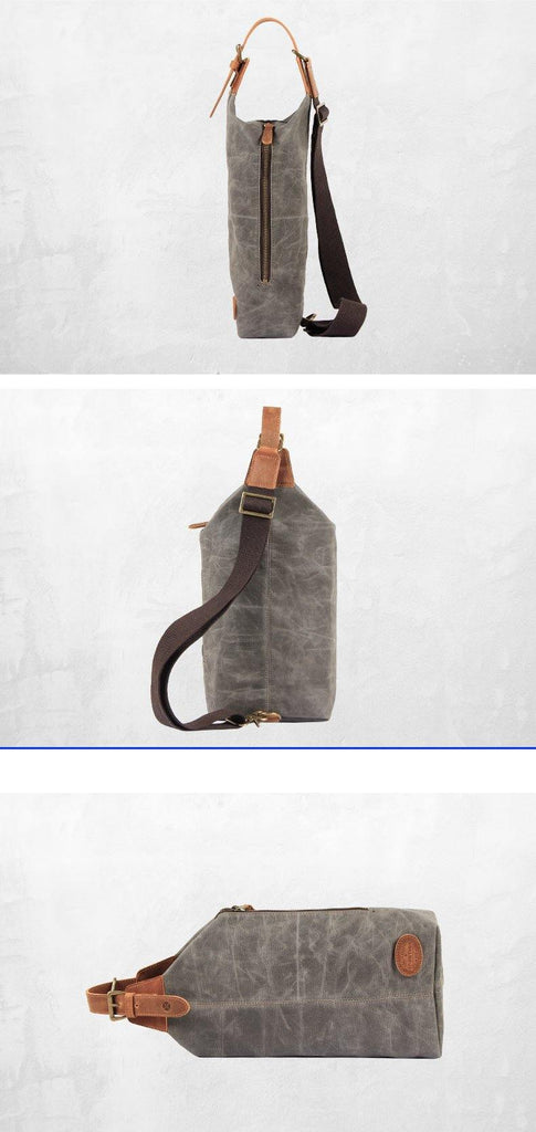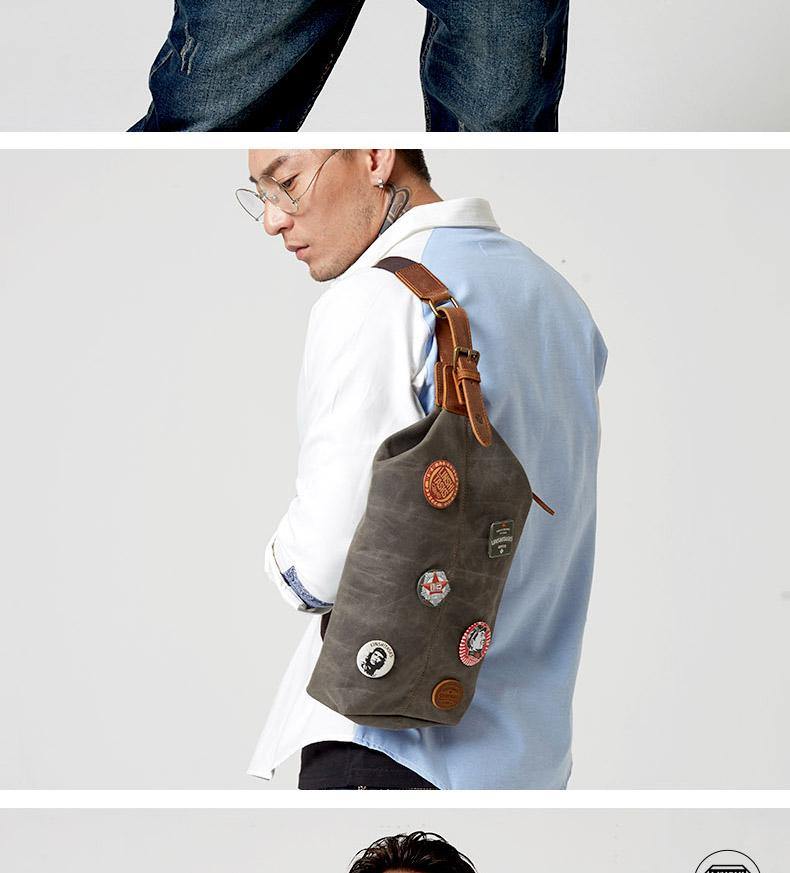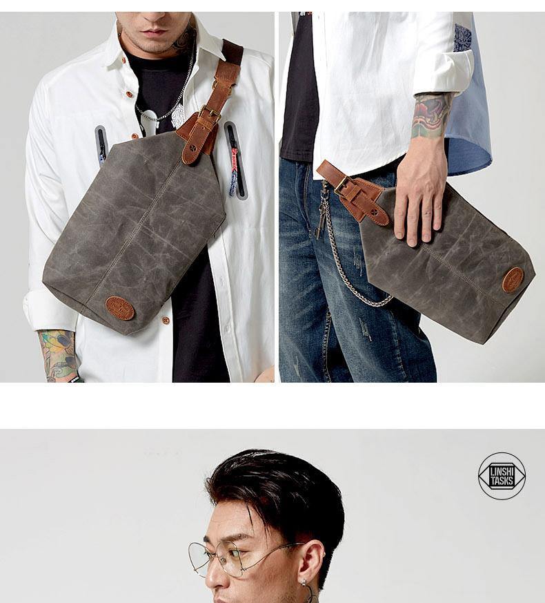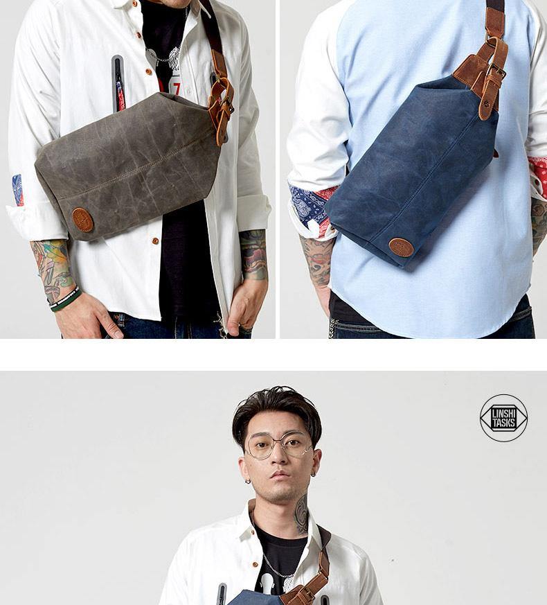 Style: Light Gray Canvas Sling Backpack Men's Sling Bag Navy Blue Chest Bag Canvas One shoulder Backpack For Men