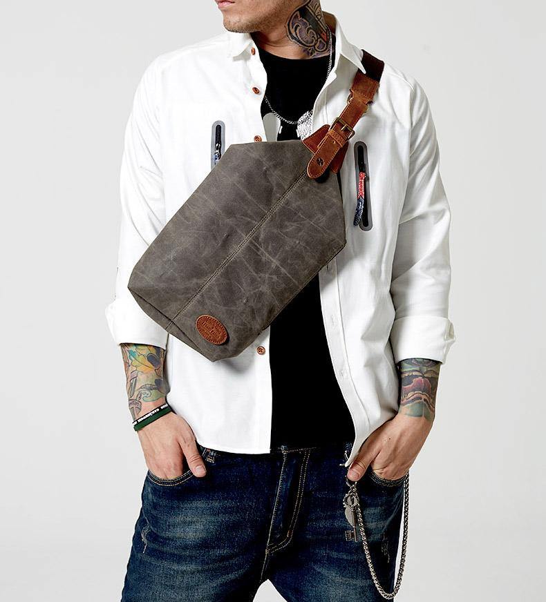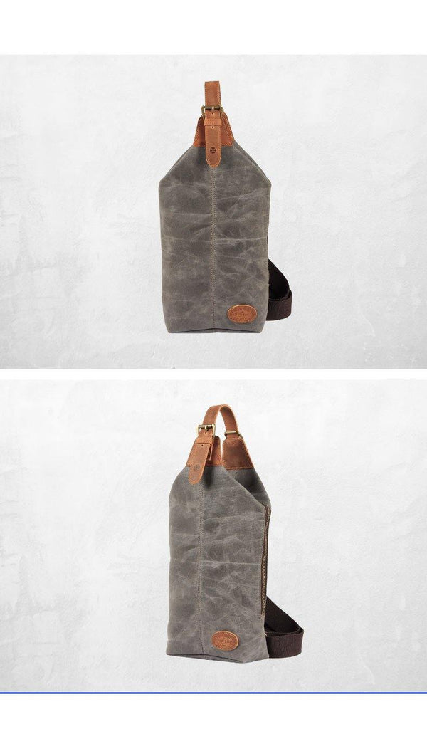 Design: Light Gray Canvas Sling Backpack Men's Sling Bag Navy Blue Chest Bag Canvas One shoulder Backpack For Men