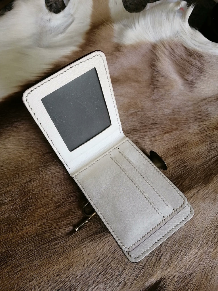 Style: Mahakala Wallet Tooled Leather Wallet Card Wallet with ID Window Mahakala Deity Wallet ID Holder Wallet Mens Wallet with ID Window