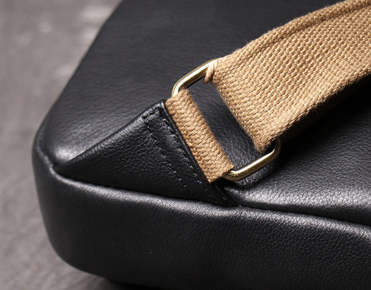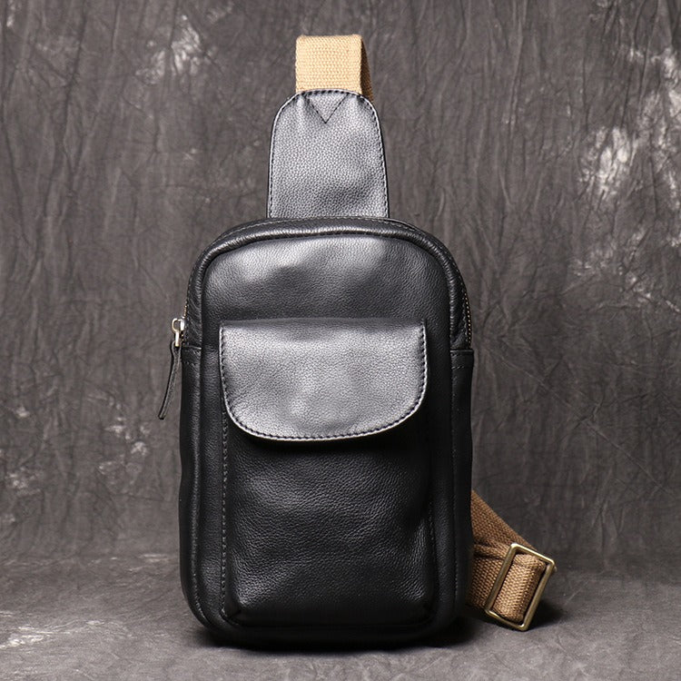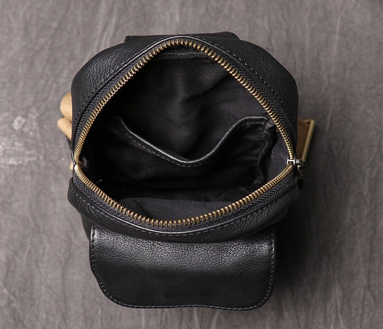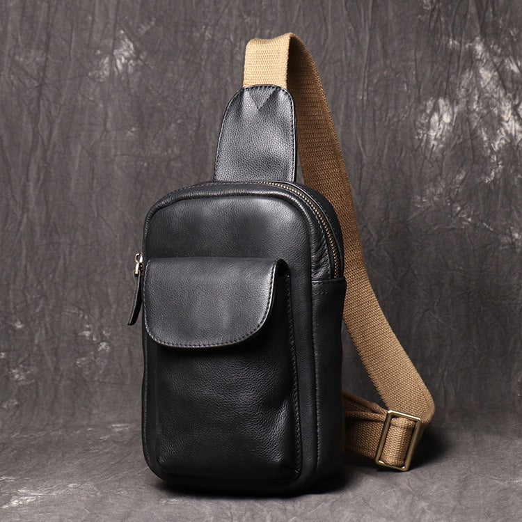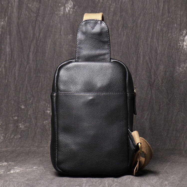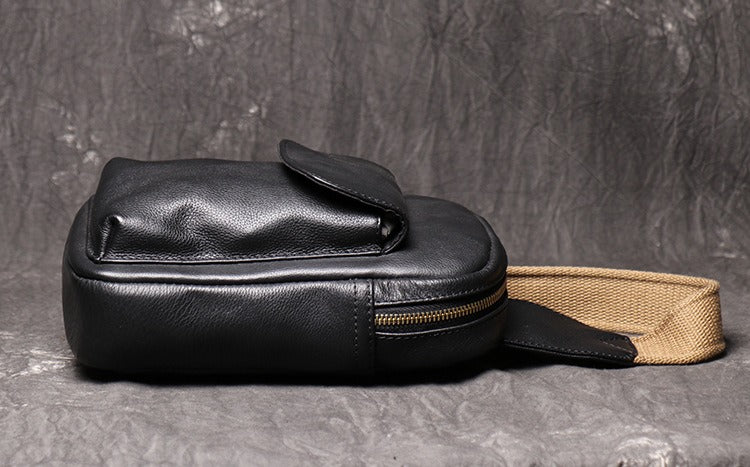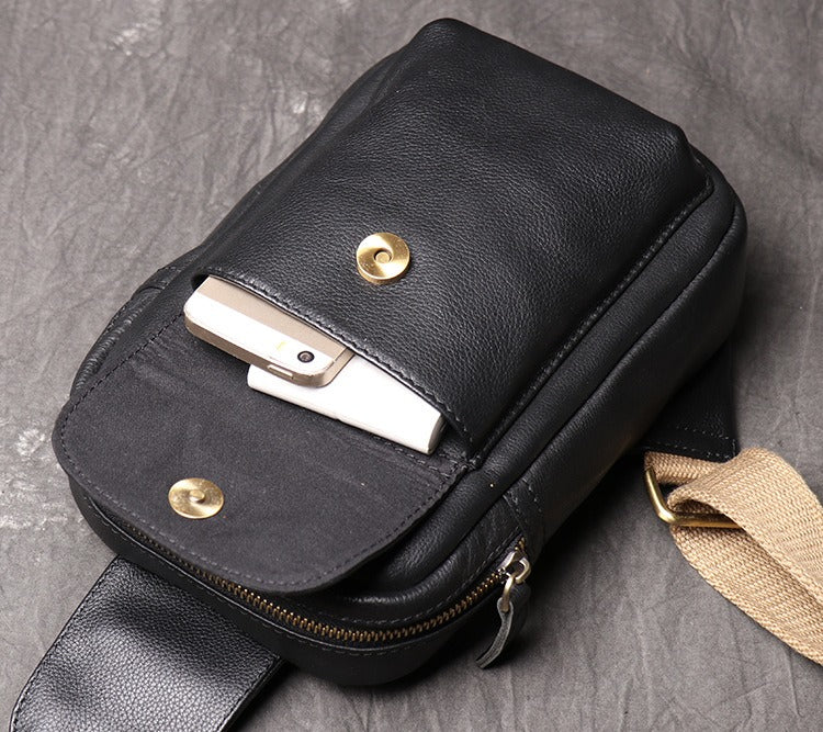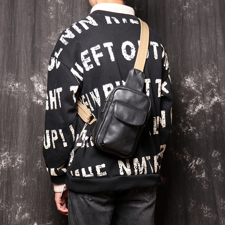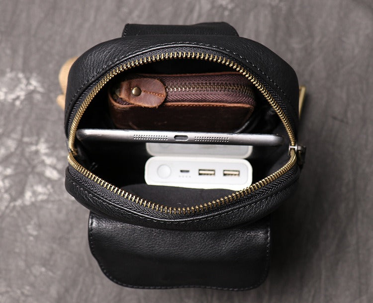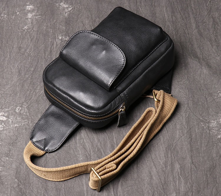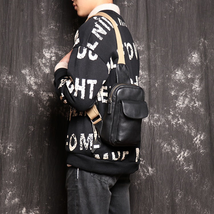 Mens Black Leather Sling Bag Cool Leather Sling Pack Cool Sling Crossbody Packs For Men