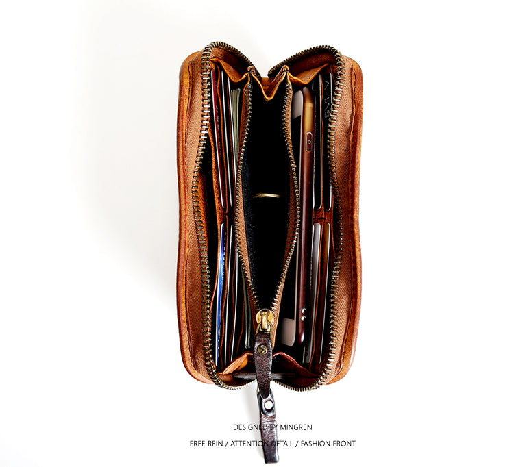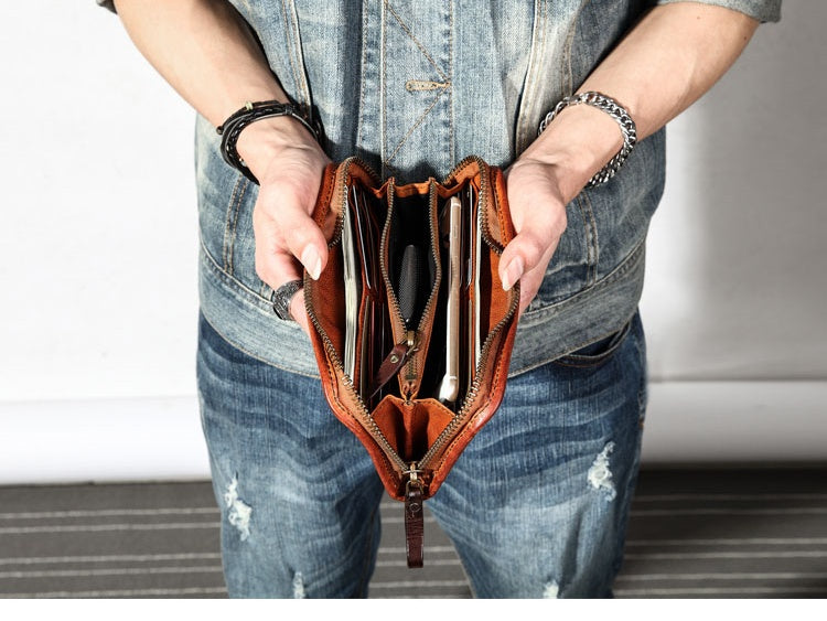 Design: Mens Leather Clutch Wallet Zip Around Wallet Leather Wallet Clutch for Men Leather Zip Wallet