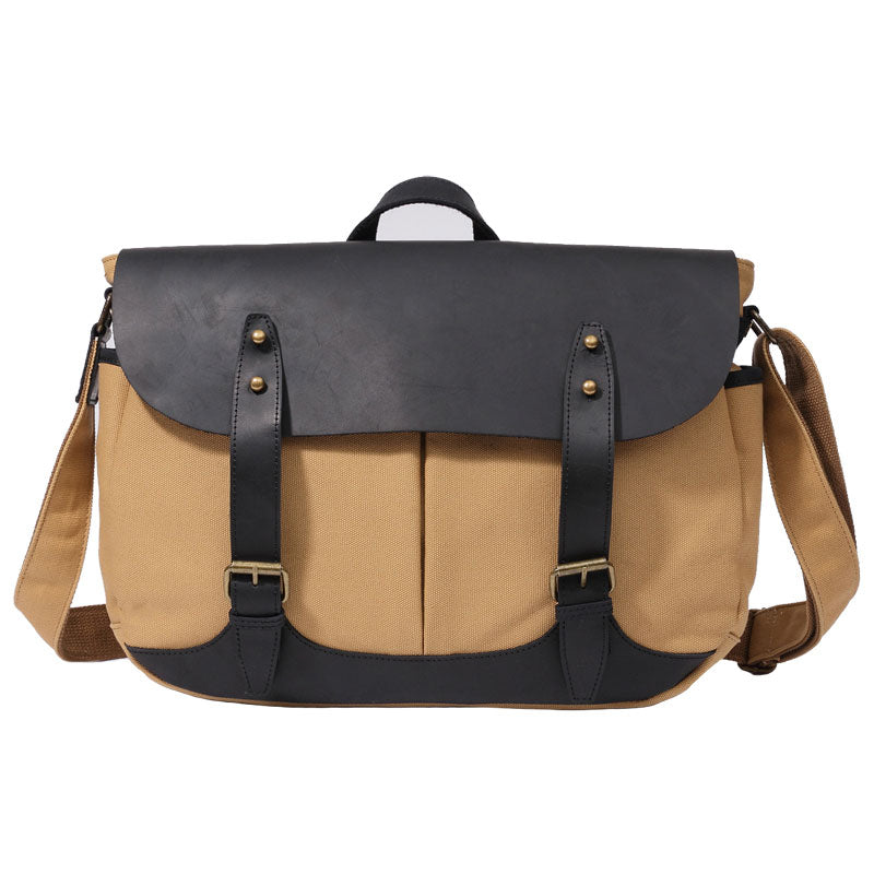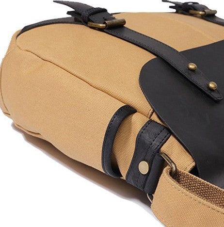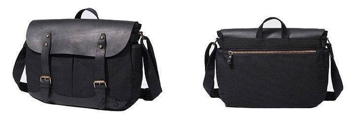 Design: Mens Canvas Leather Saddle Side Bag Messenger Bag Canvas Shoulder Bag for Men