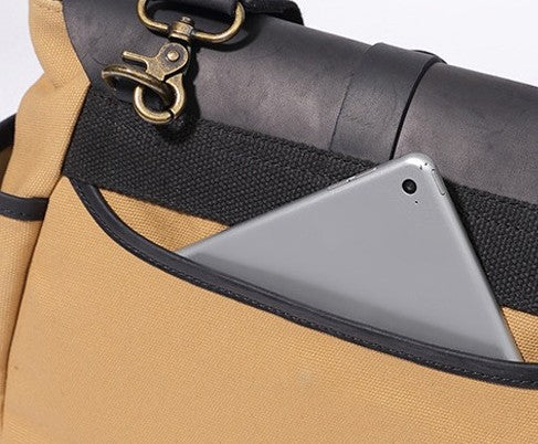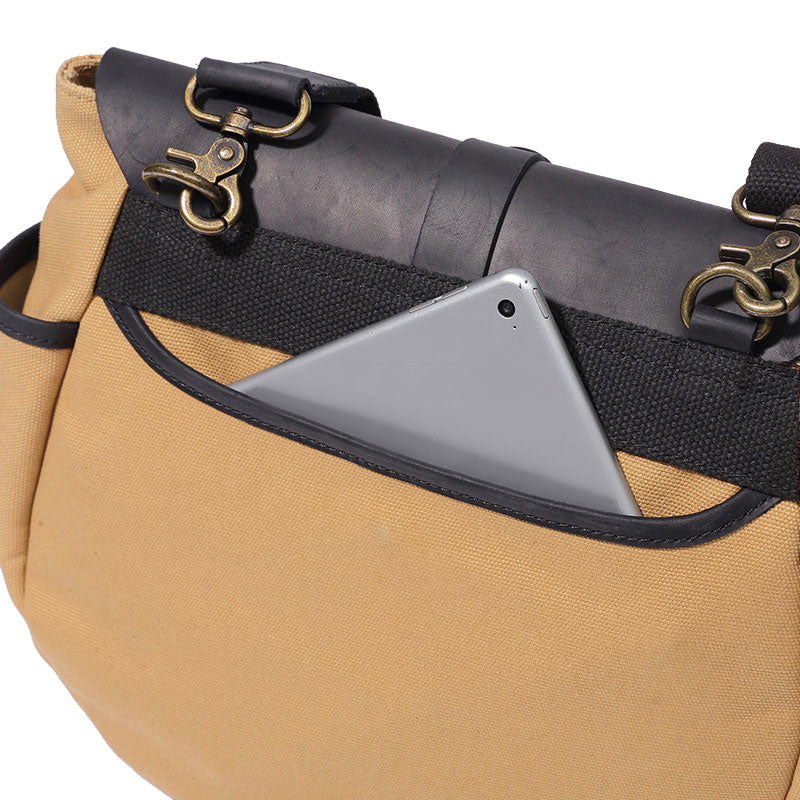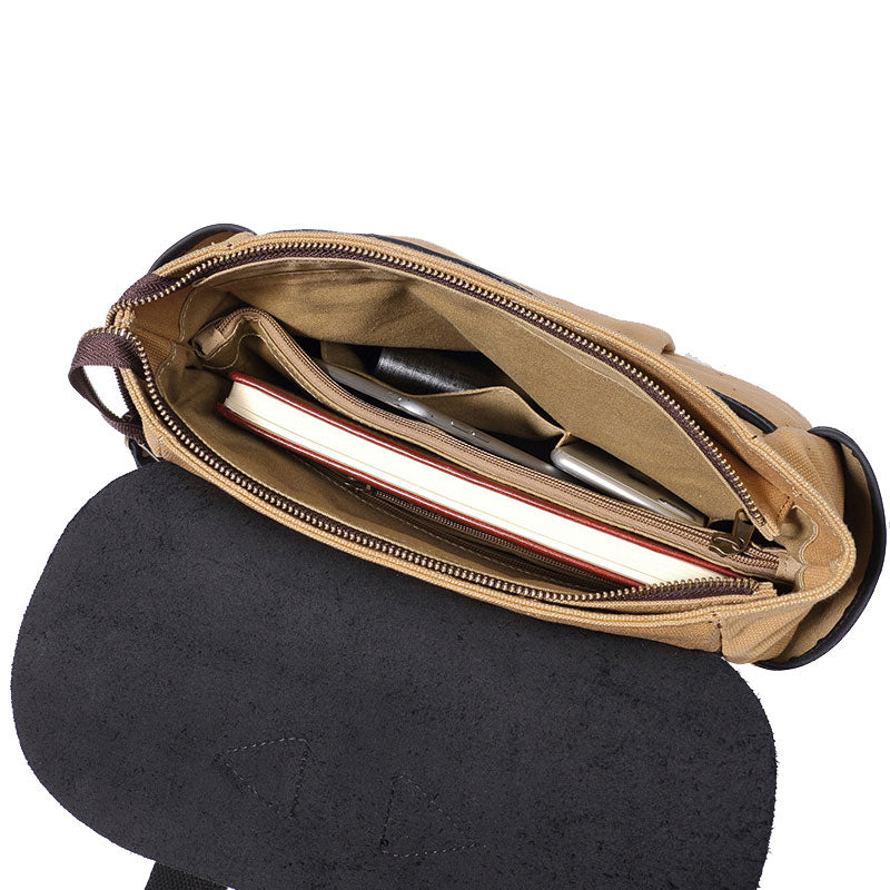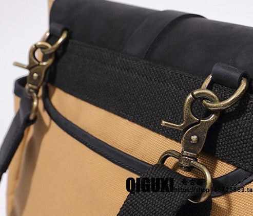 Design: Mens Canvas Leather Saddle Side Bag Messenger Bag Canvas Shoulder Bag for Men