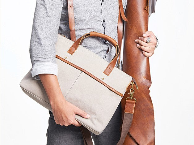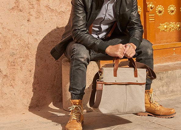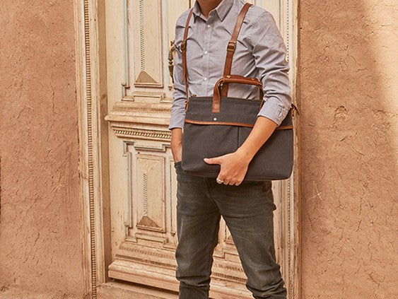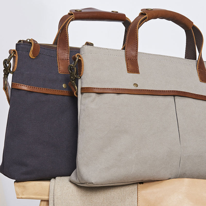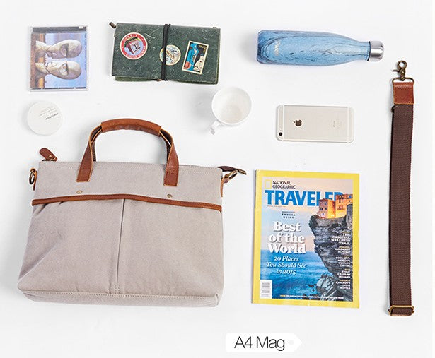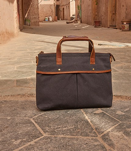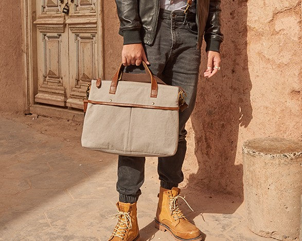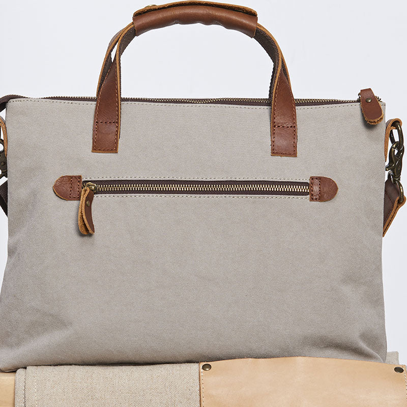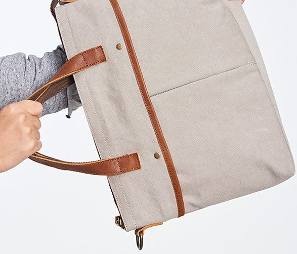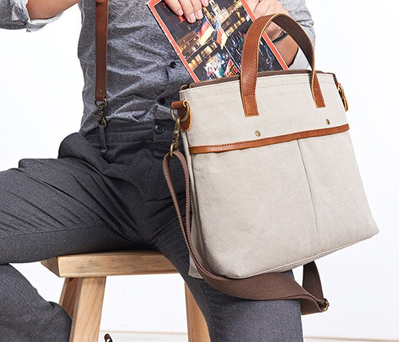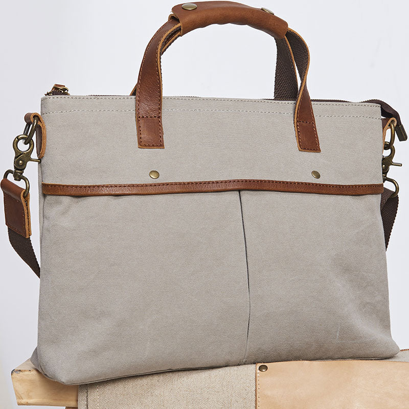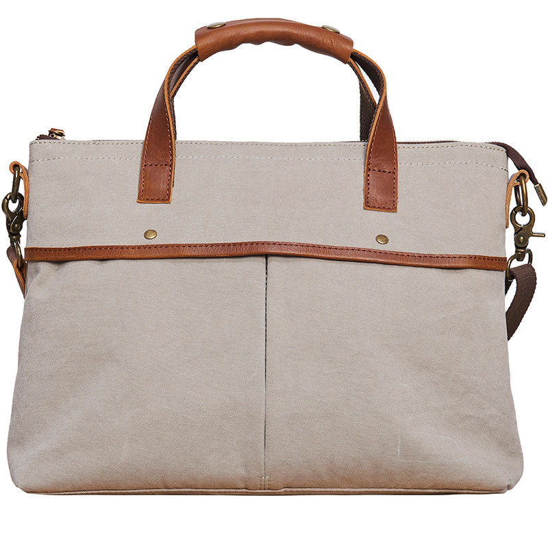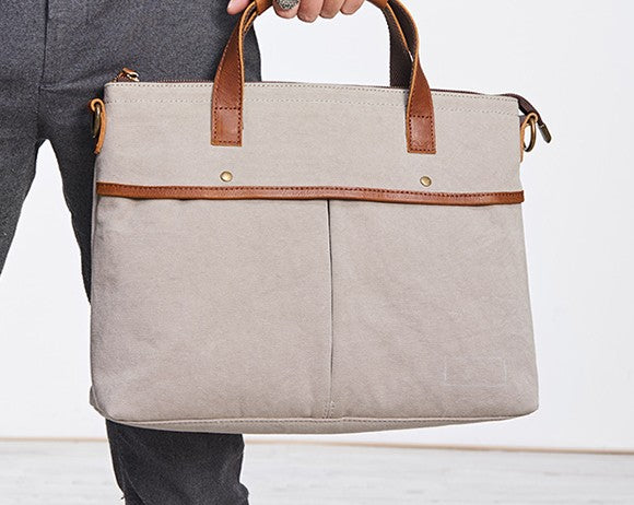 Design: Mens Gray Canvas 14inch Briefcase Handbag Work Bag Business Bag for Men
