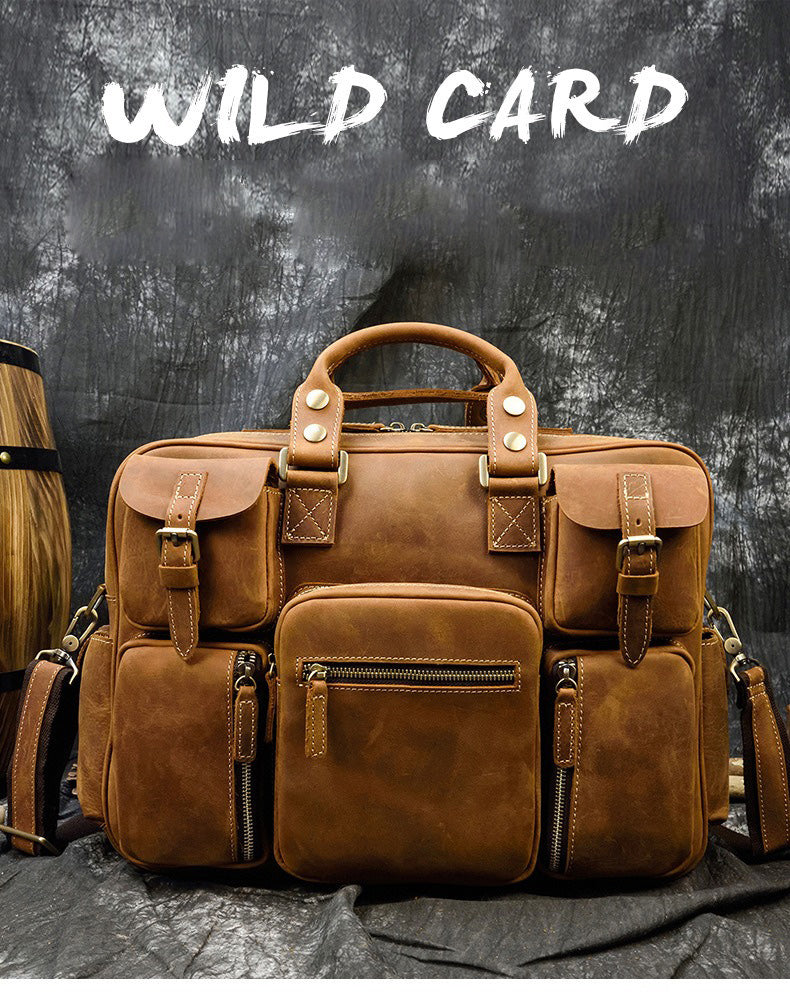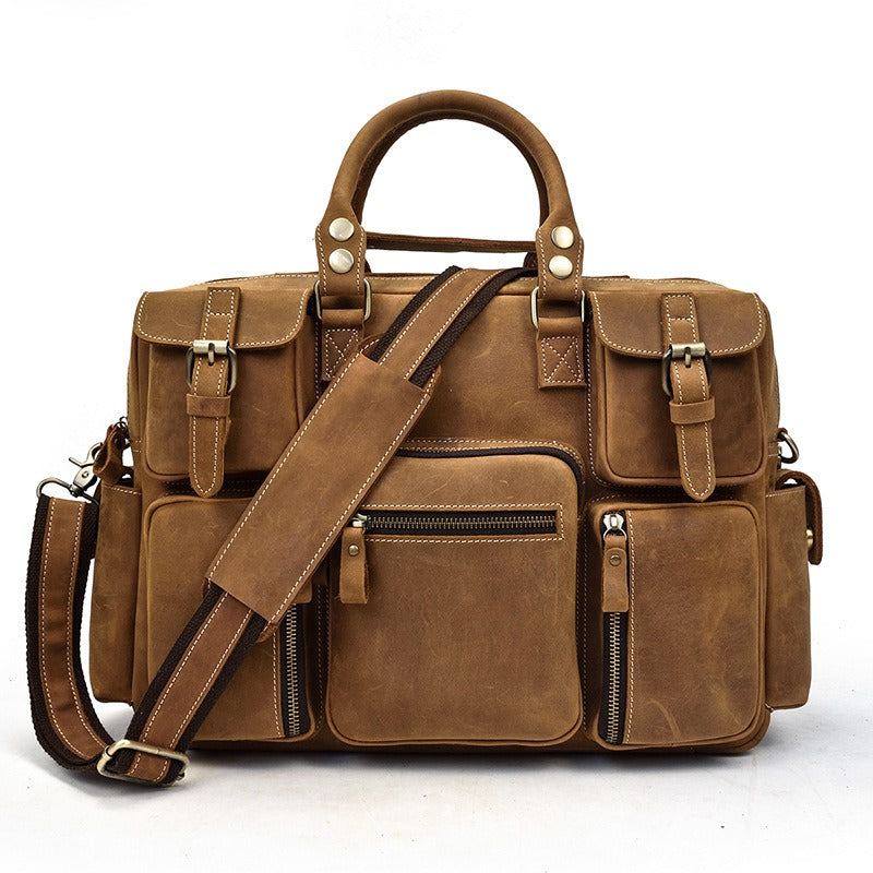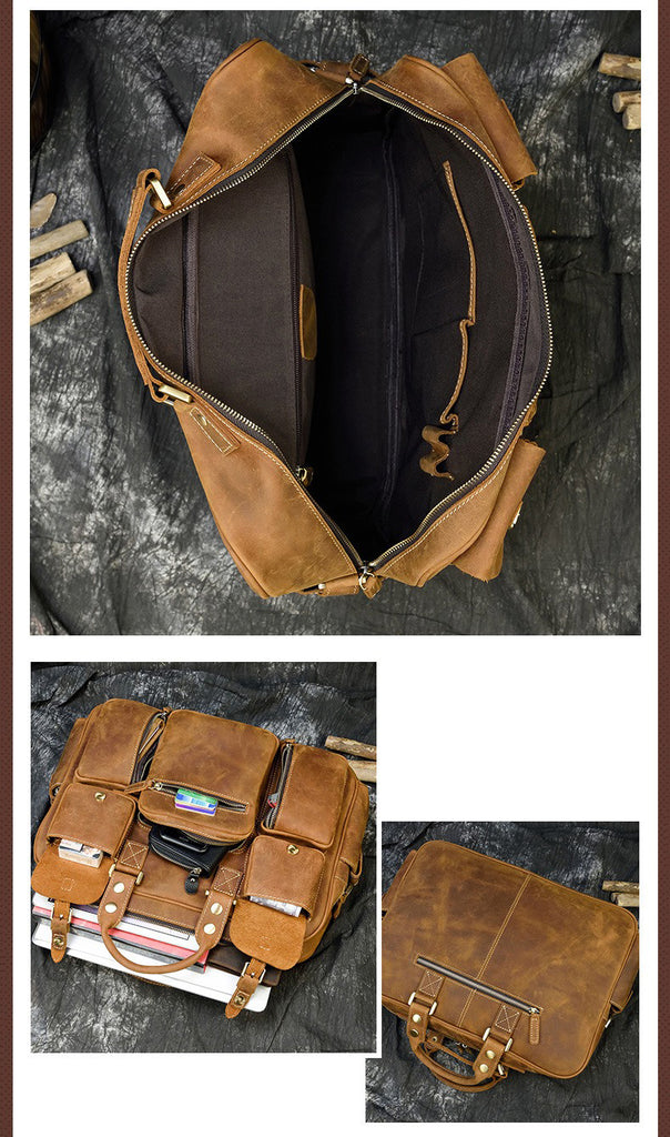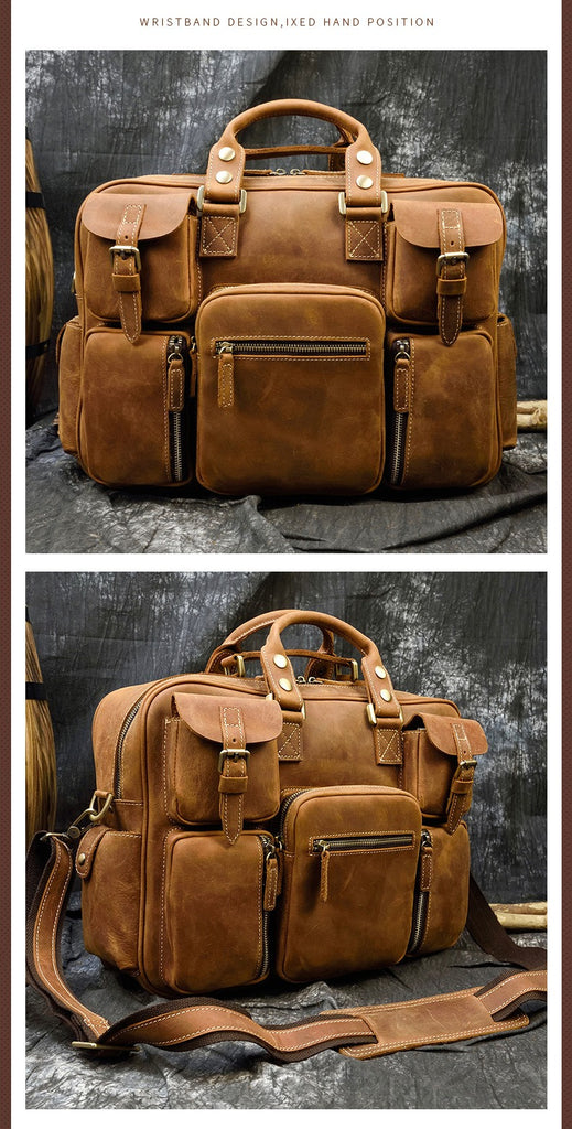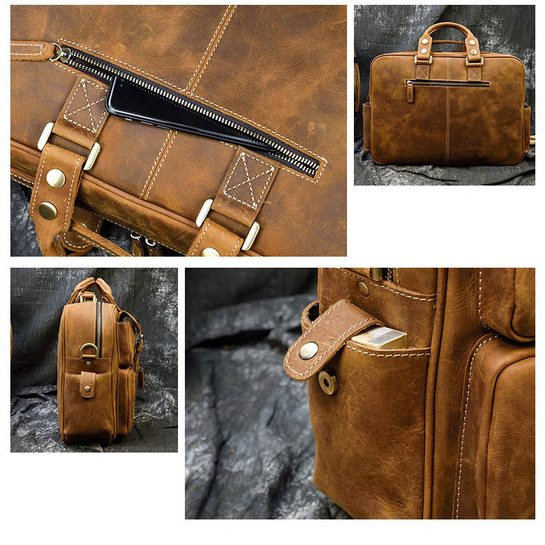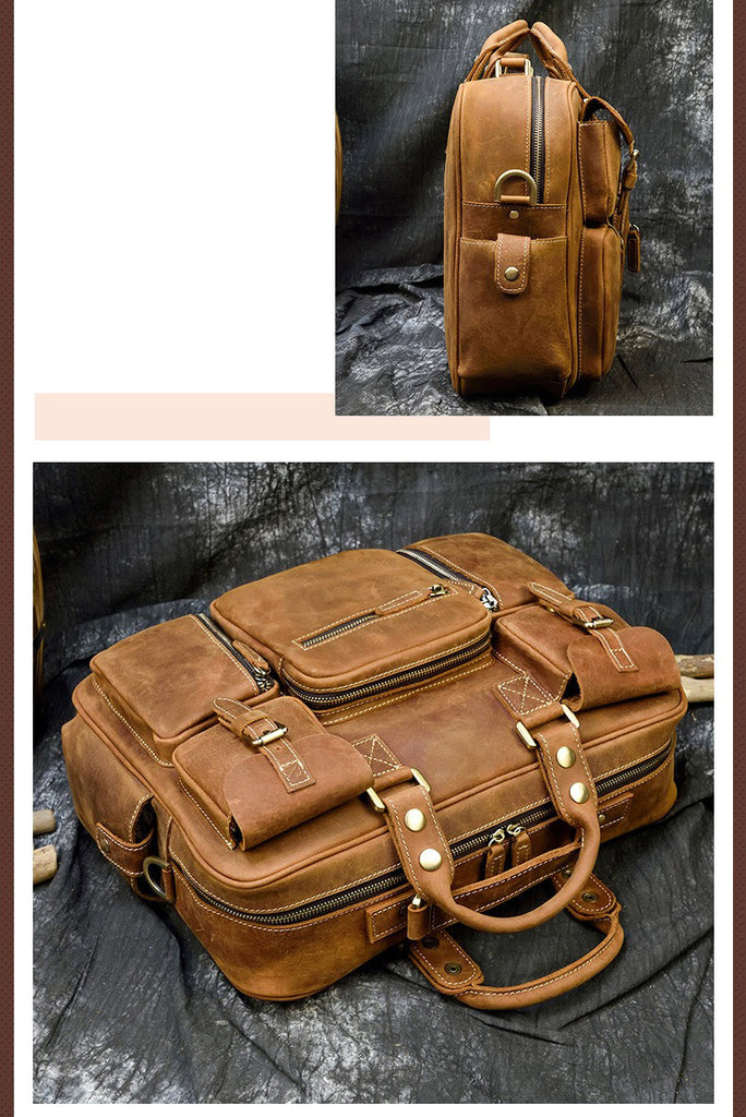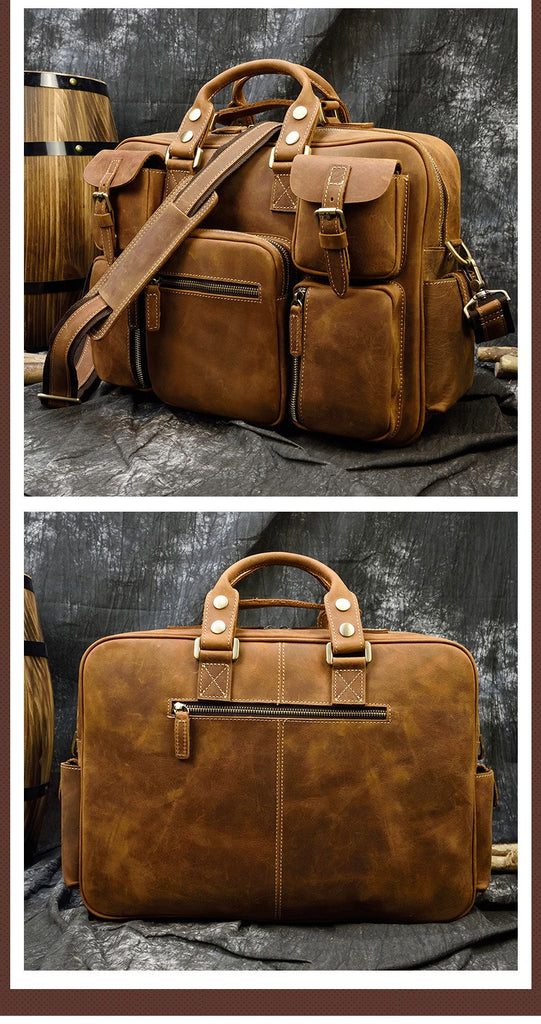 Design: Mens Large Leather Briefcase Travel Briefcase 14‘’ Laptop Travel Work Handbag For Men