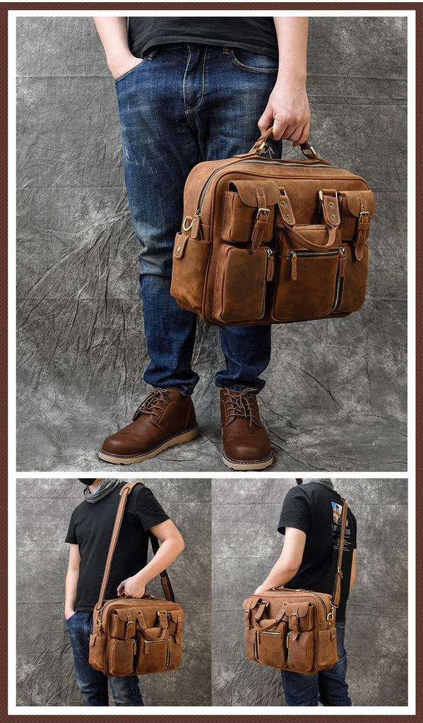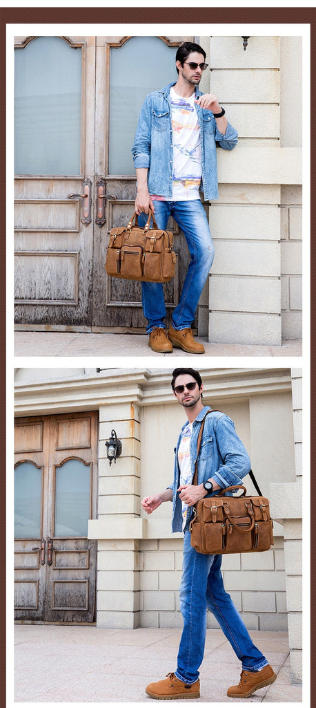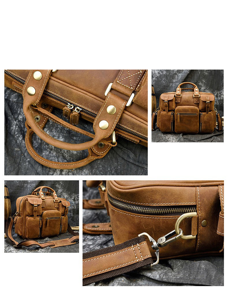 Design: Mens Large Leather Briefcase Travel Briefcase 14‘’ Laptop Travel Work Handbag For MenOverview: