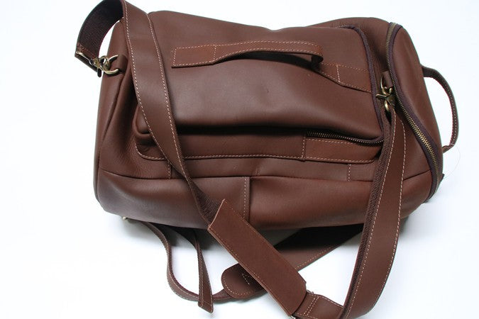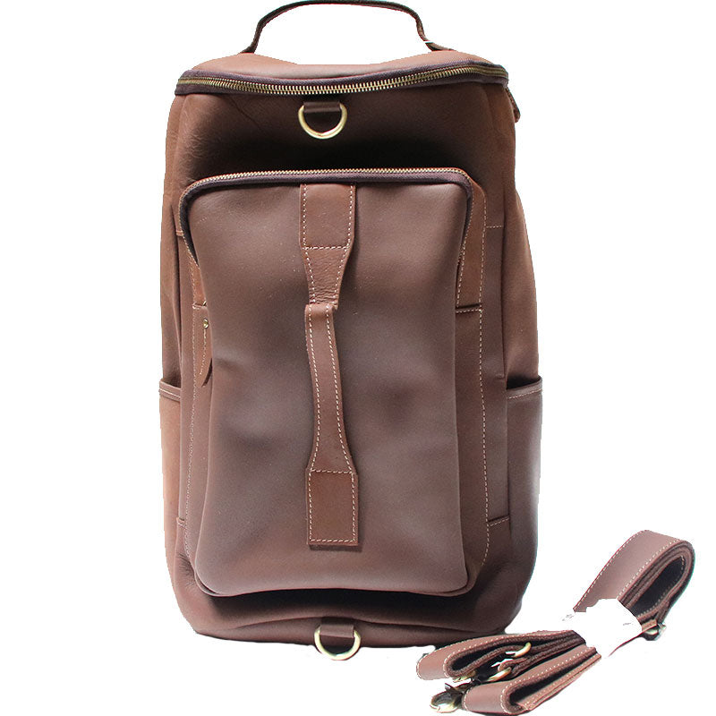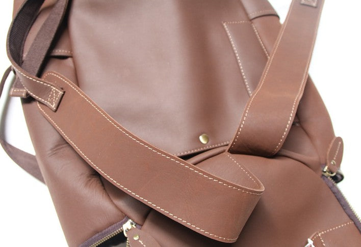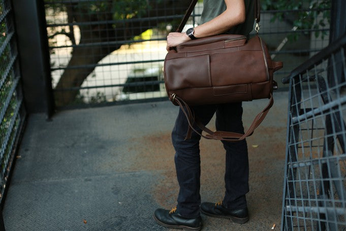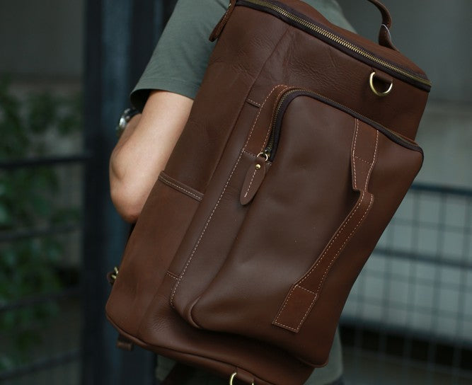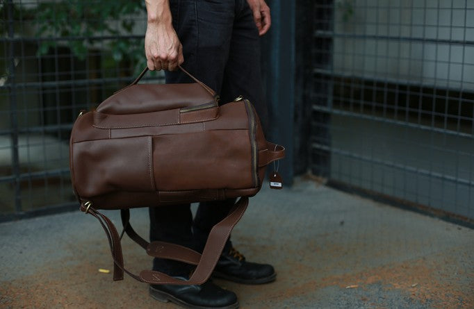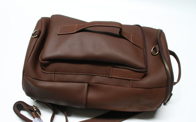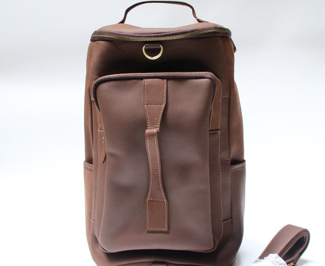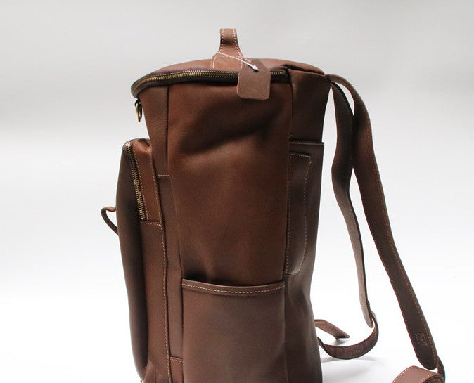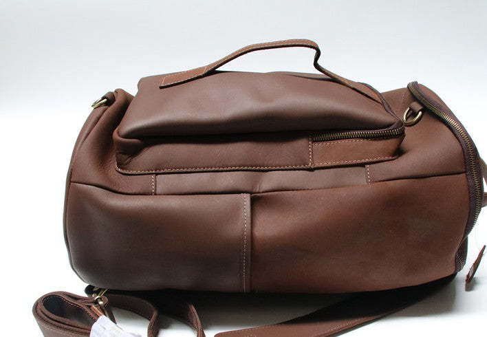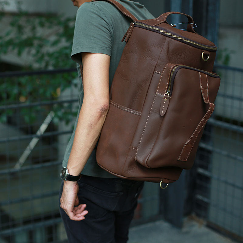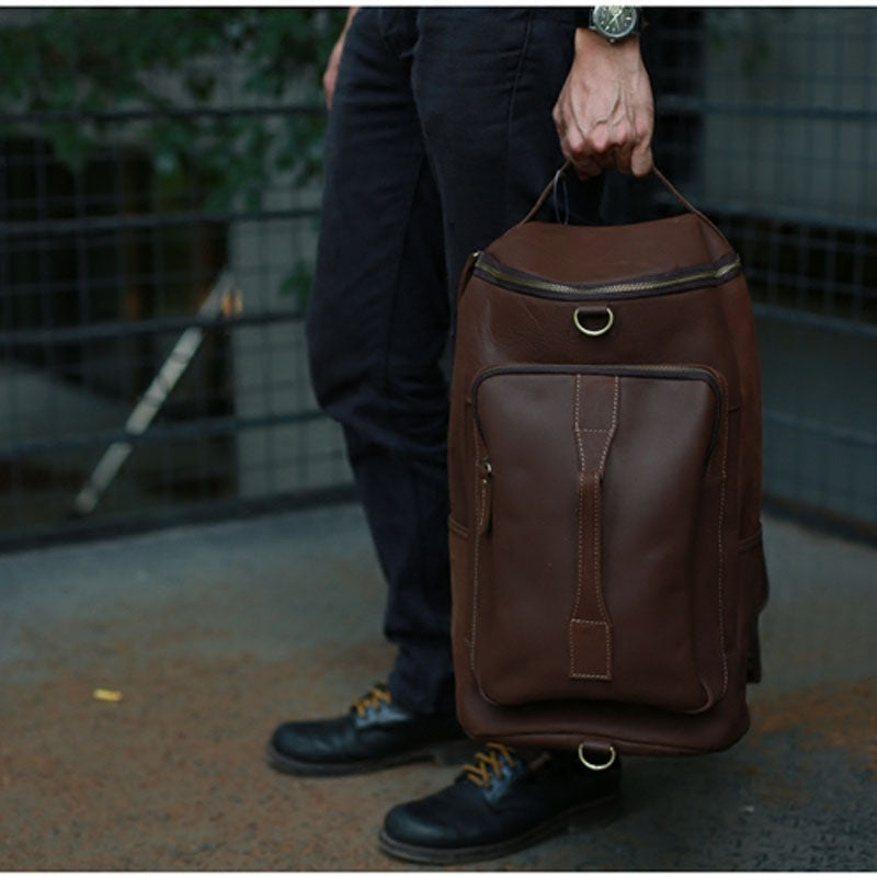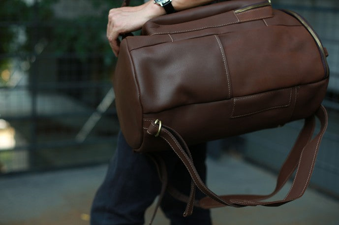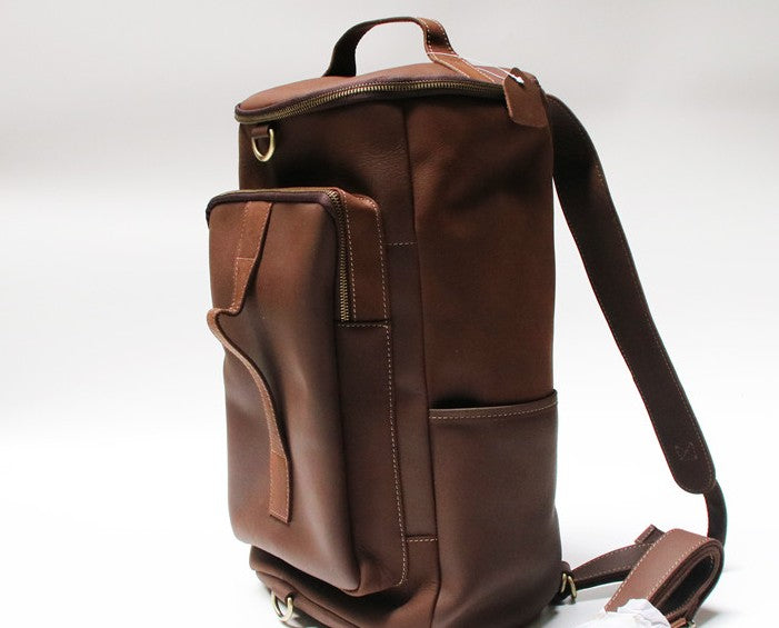 Design: Mens Leather Barrel Backpack Cool Travel Bag Weekender Bag for men