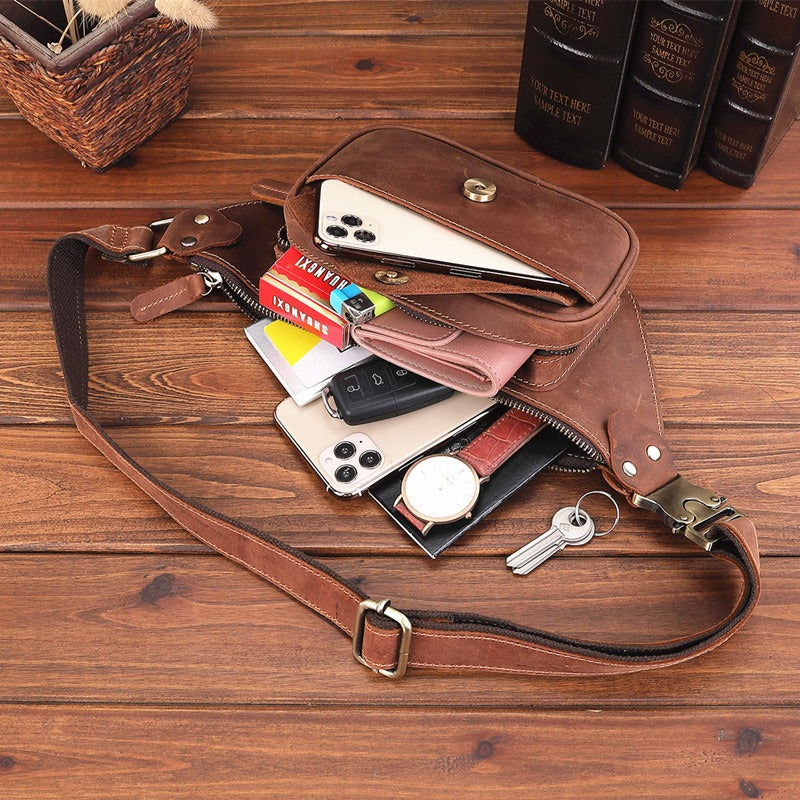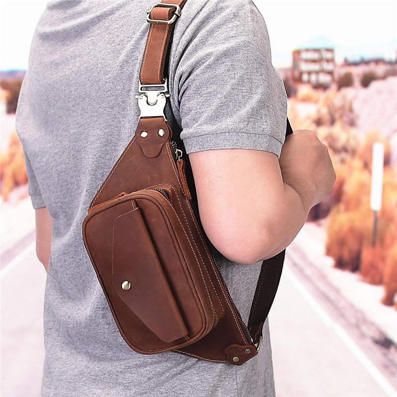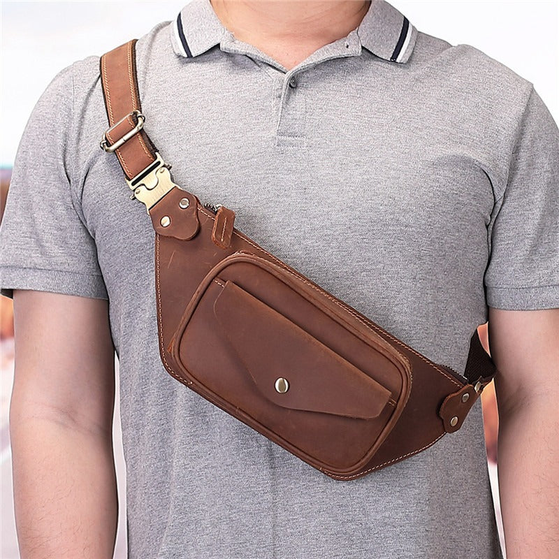 Style: Mens Leather Hip Pack Fanny Pack Belt Bag Bumbag Waist Bags For Men