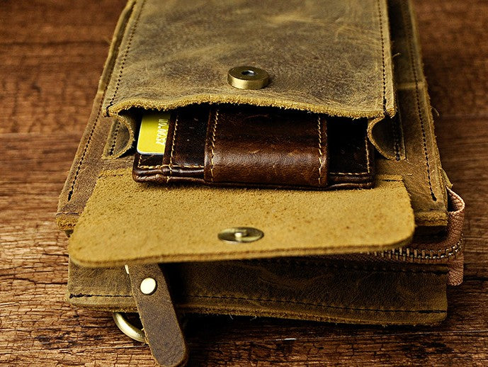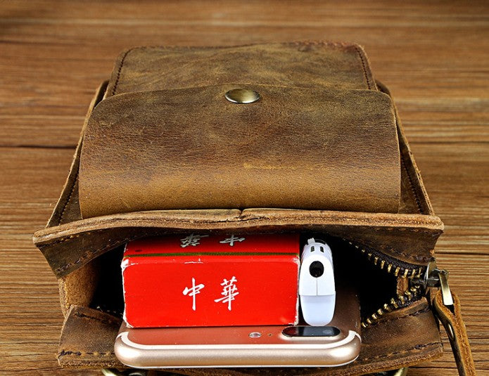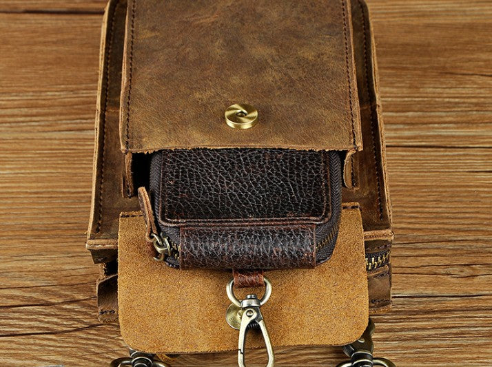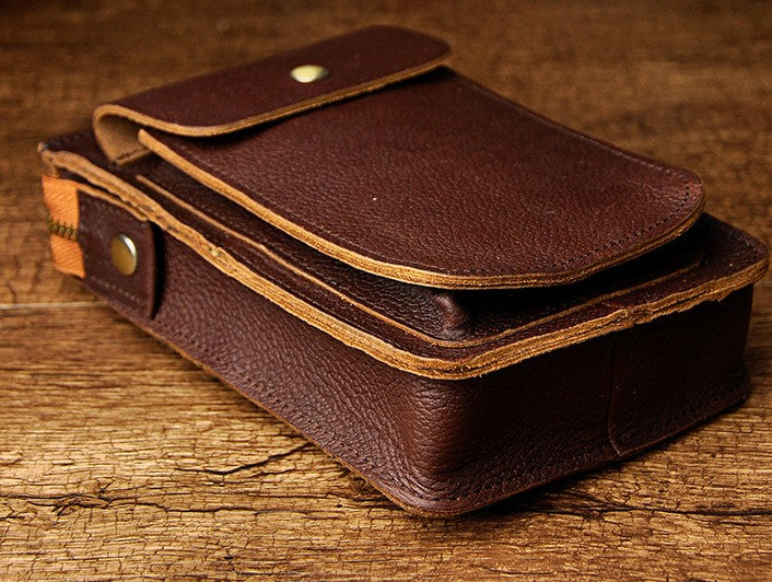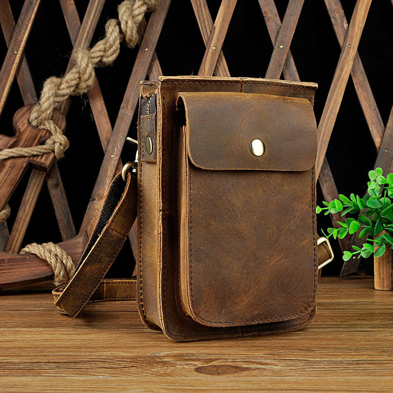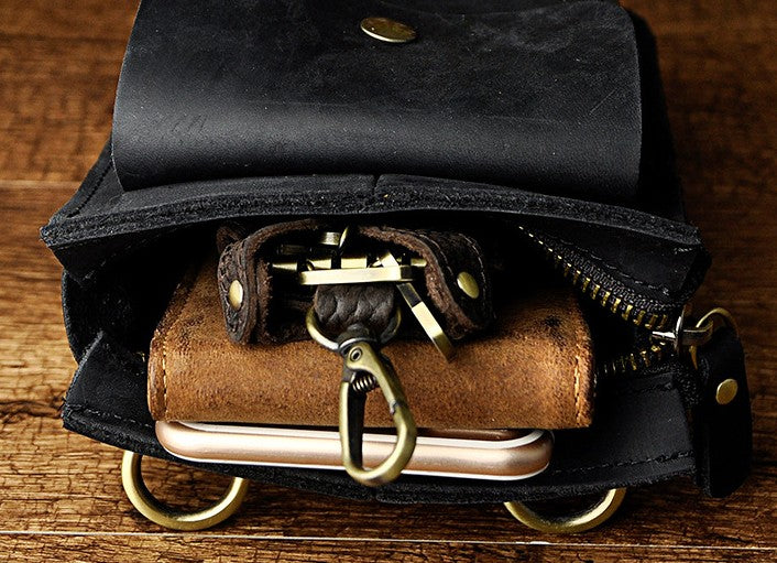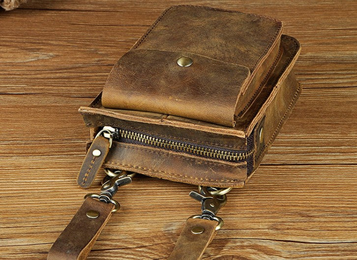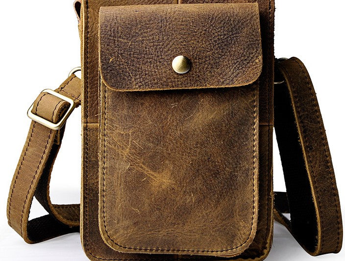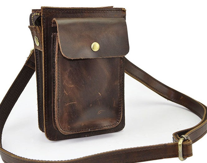 Design: Mens Leather Small Side Bag Waist Pouch COURIER BAG Holster Belt Case Belt Pouch for Men