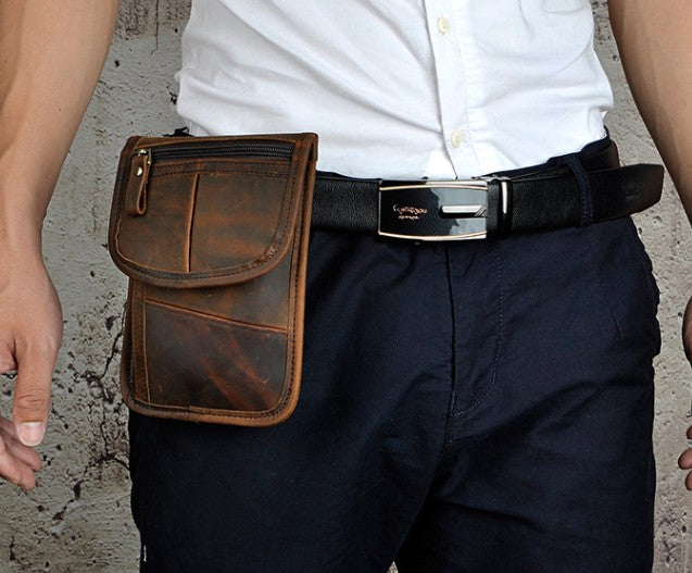 Design: Mens Leather Small Belt Pouch Slim Side Bag Waist Pouch Holster Belt Case for Men