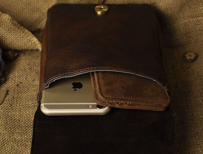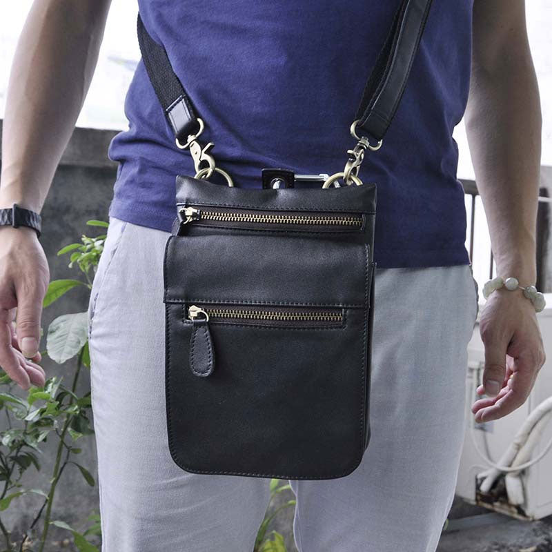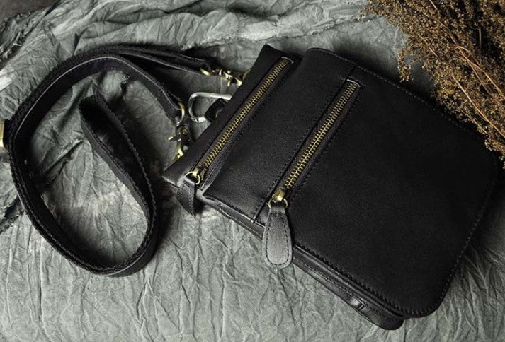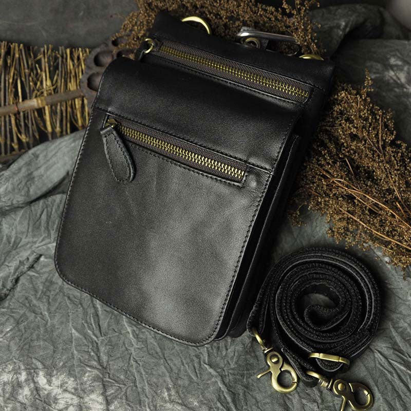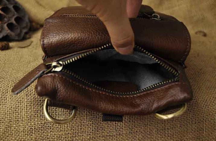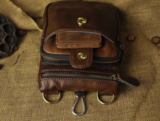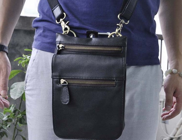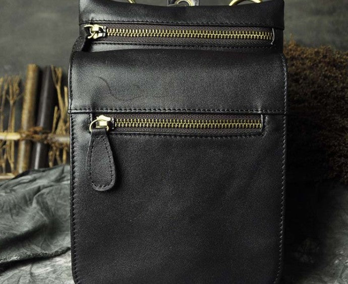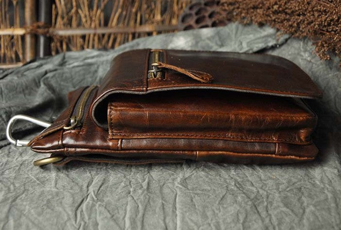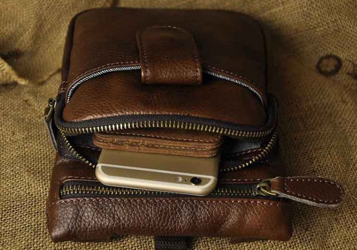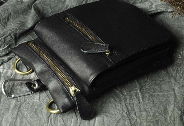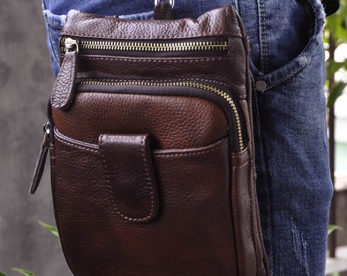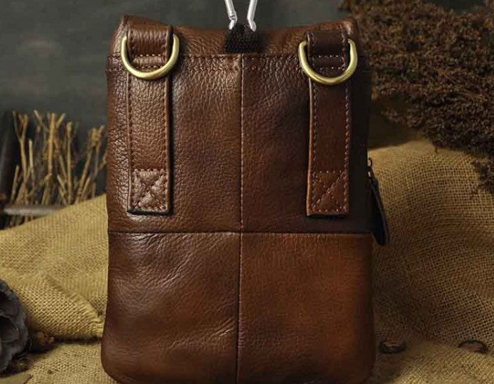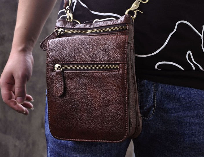 Design: Mens Leather Small COURIER BAG Side Bag Waist Pouch Holster Belt Case Belt Pouch for Men