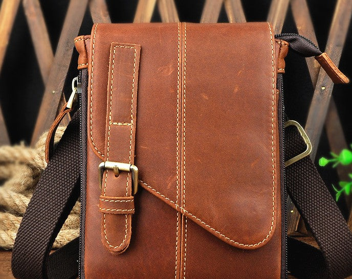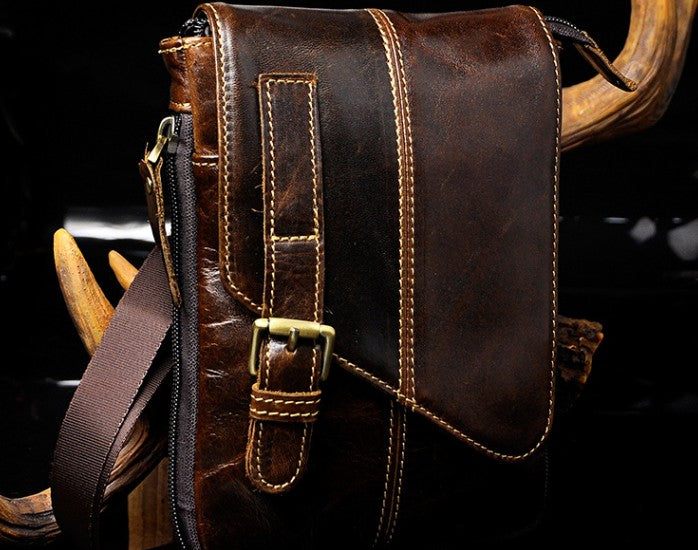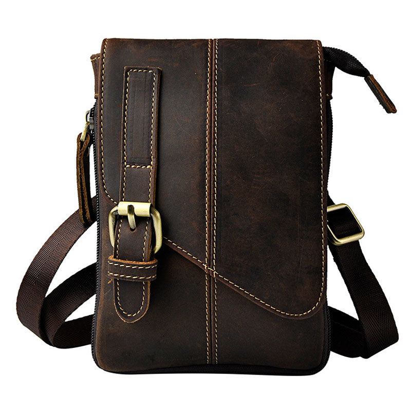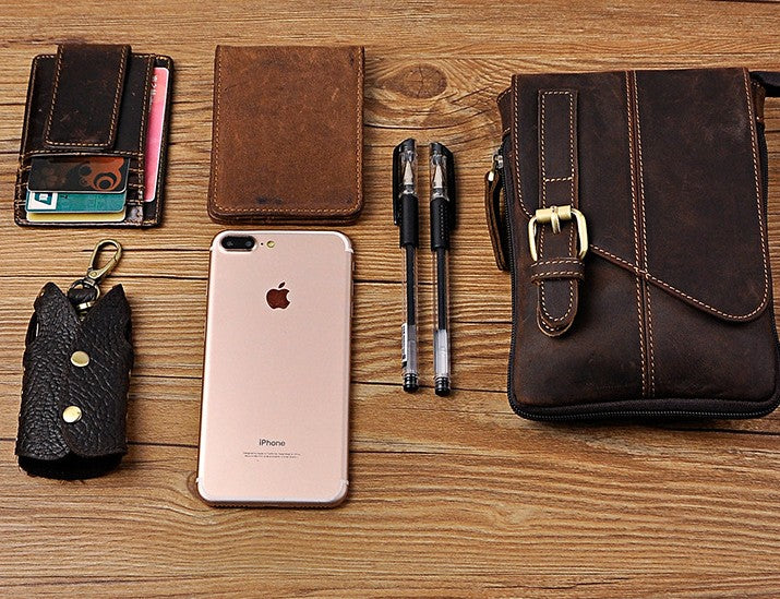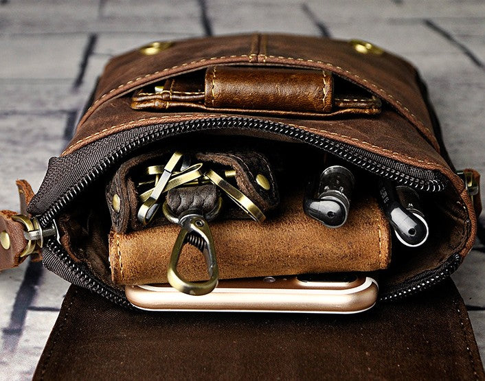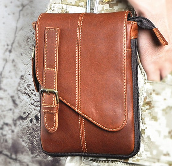 Design: Mens Leather Small COURIER BAG Side Bag Waist Pouch Holster Belt Case Belt Pouch for Men