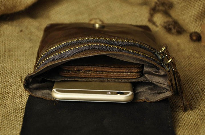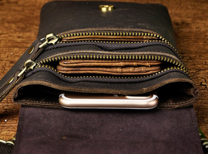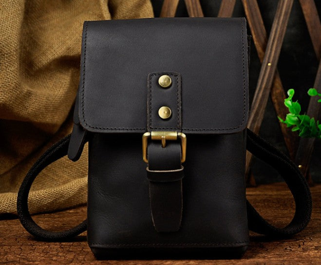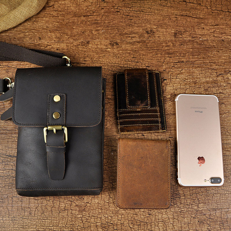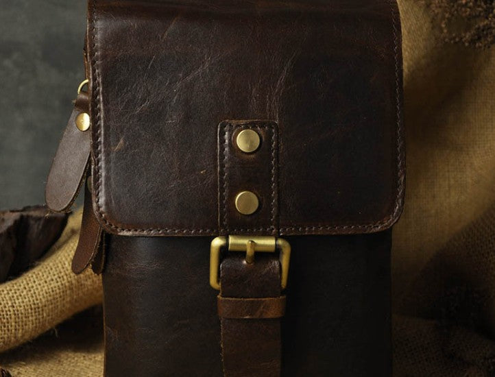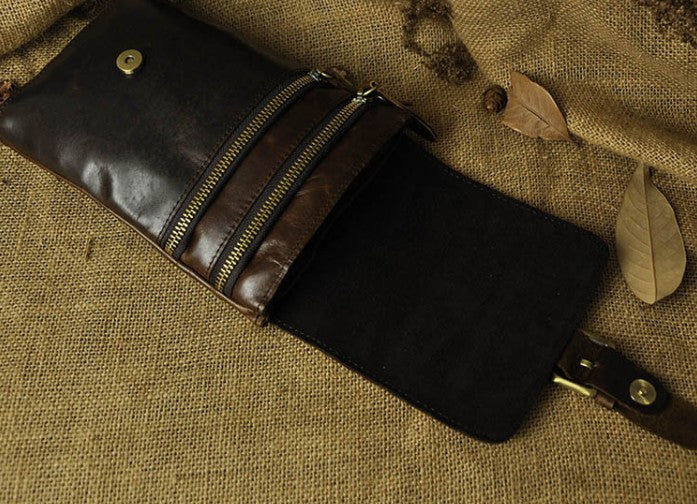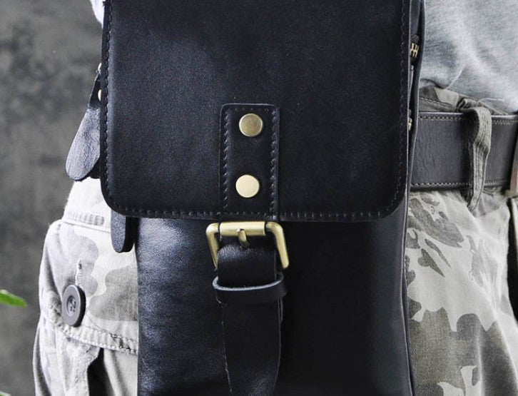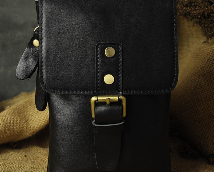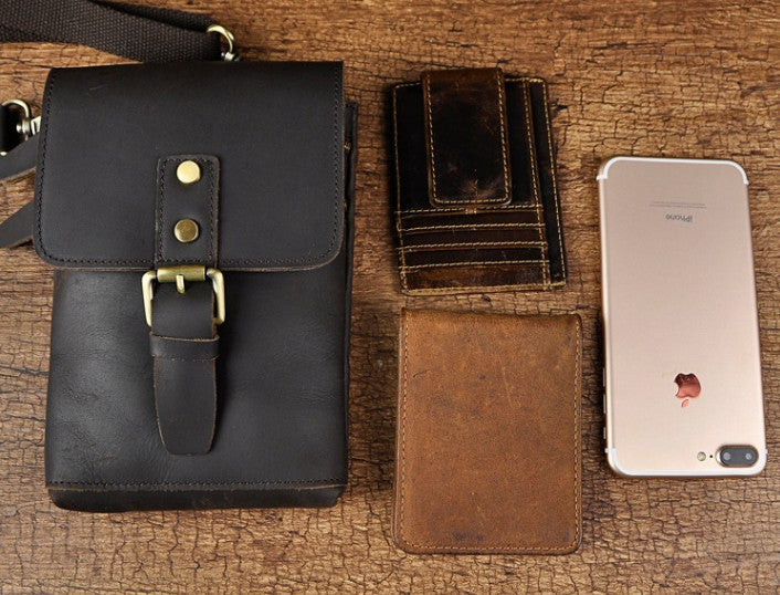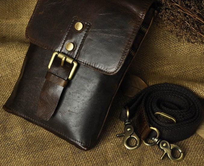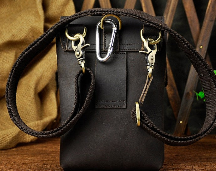 Design: Mens Leather Small Side Bag Waist Pouch COURIER BAG Holster Belt Case Belt Pouch for Men