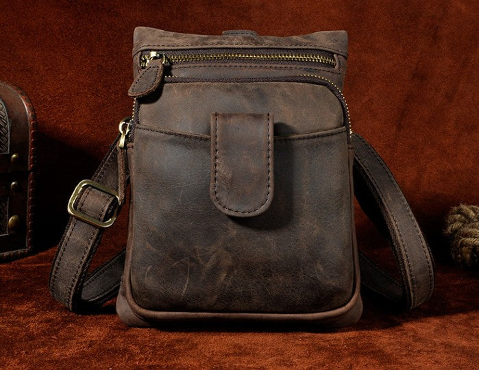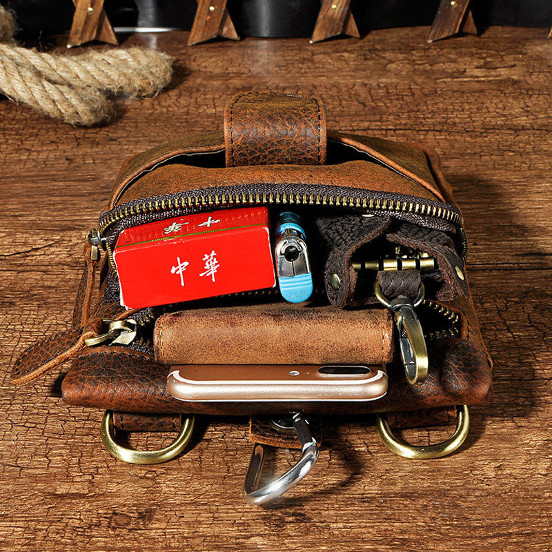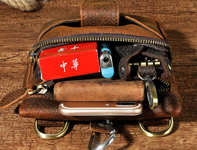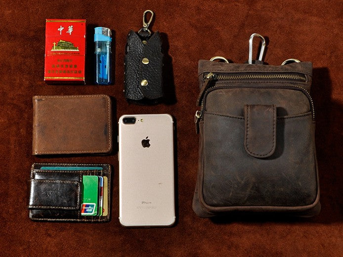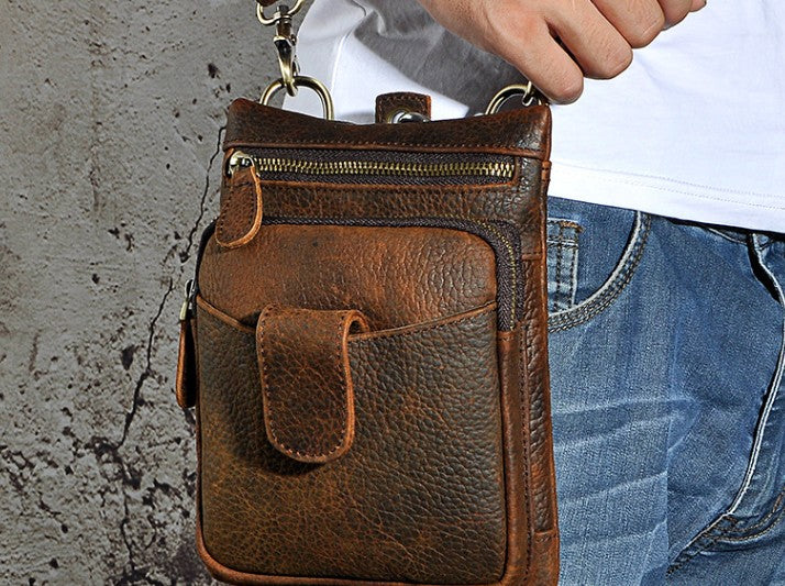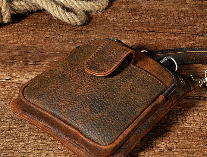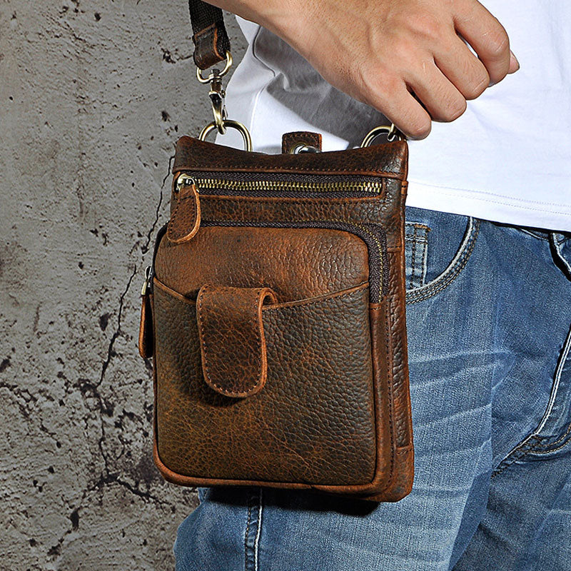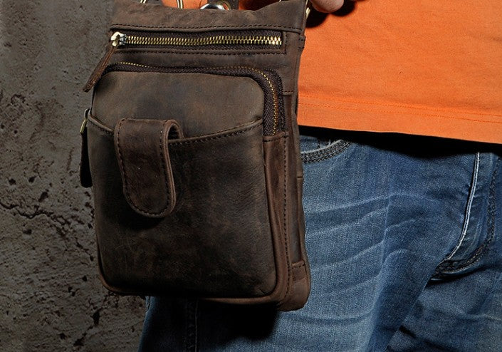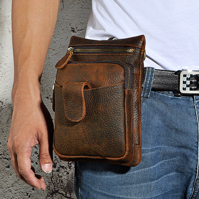 Design: Small Mens Leather Side Bag Belt Pouch Holster Belt Case Waist Pouch for Men