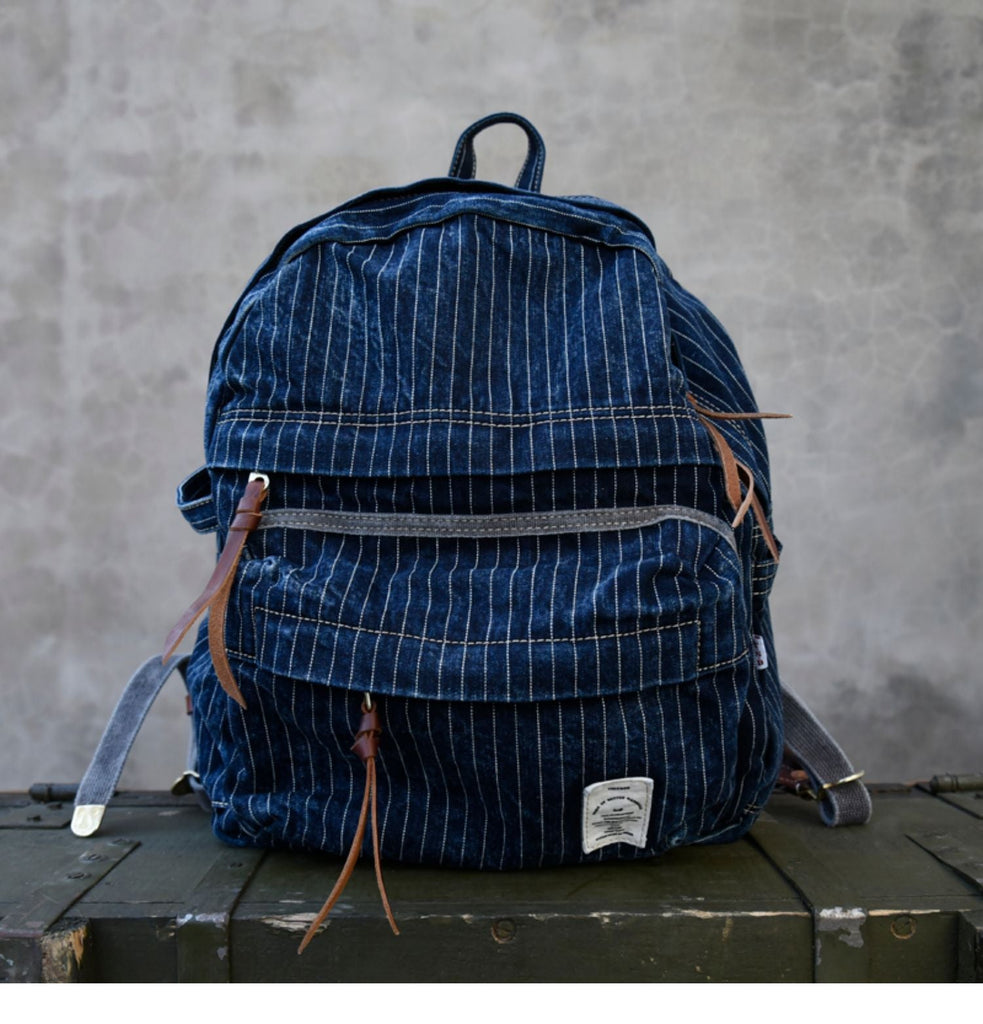 Style: Blue Denim Backpack for Women Striped Jean Backpack Mens Striped Backpack