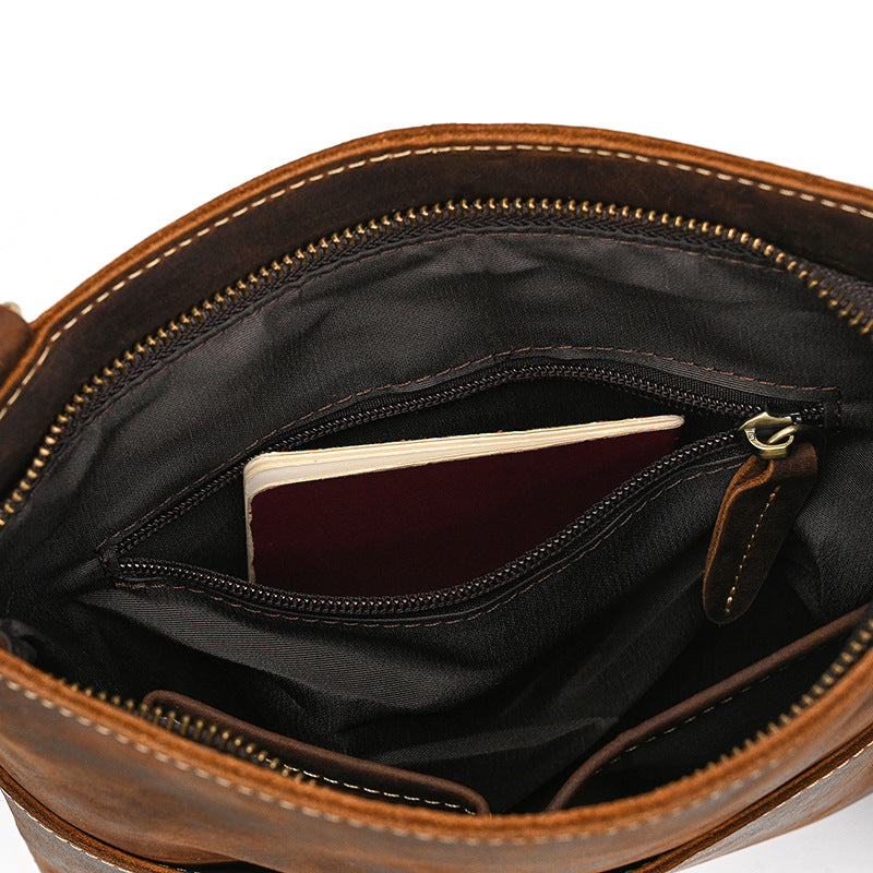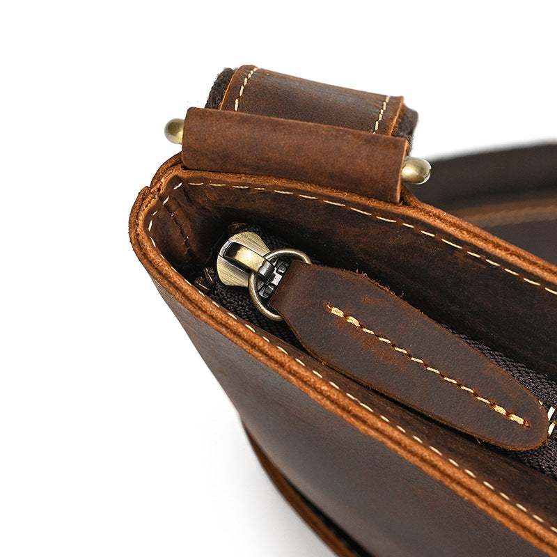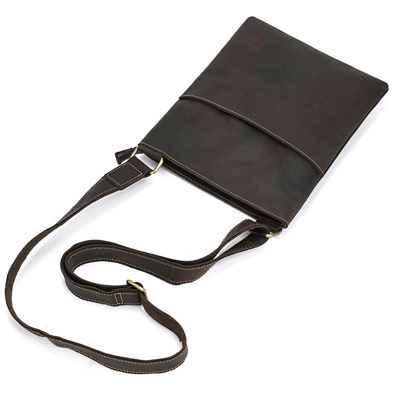 Slim Vertical Messenger Bag for Men - Premium Crazy Horse Leather