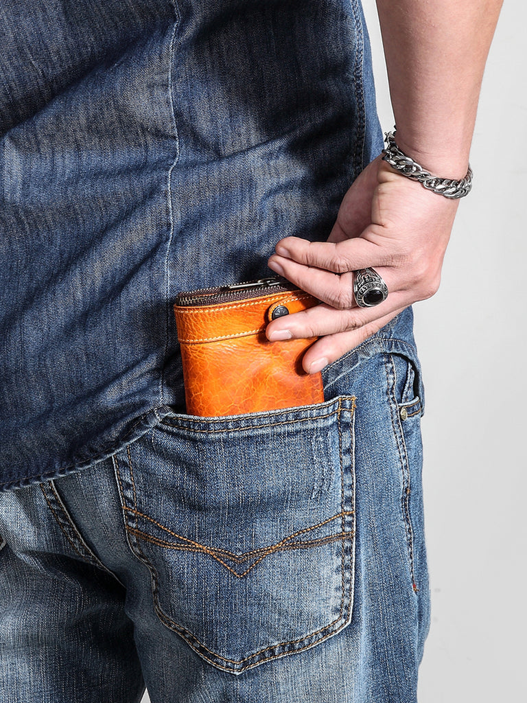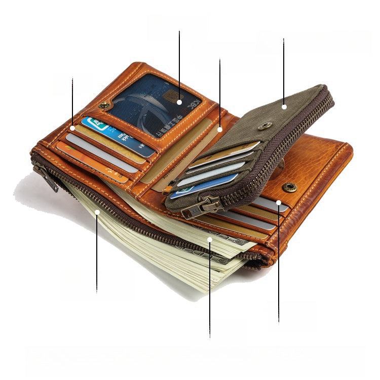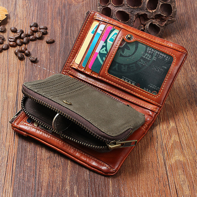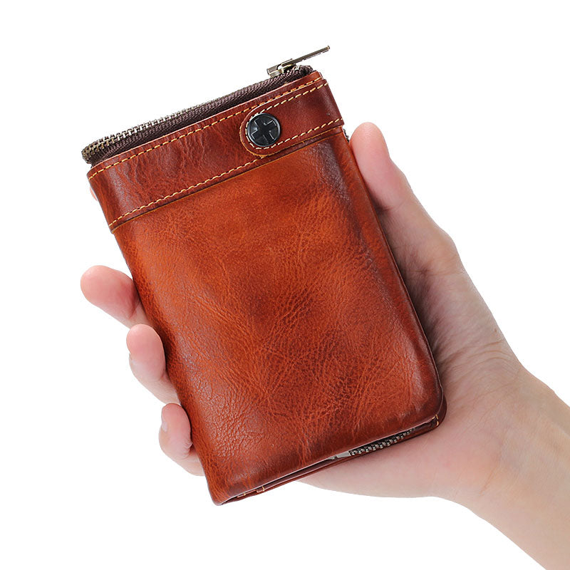 Design: Brown Leather Wallet​ Vertical Bifold Wallet Men's Vertical Wallet​ With Detachable Card Holder