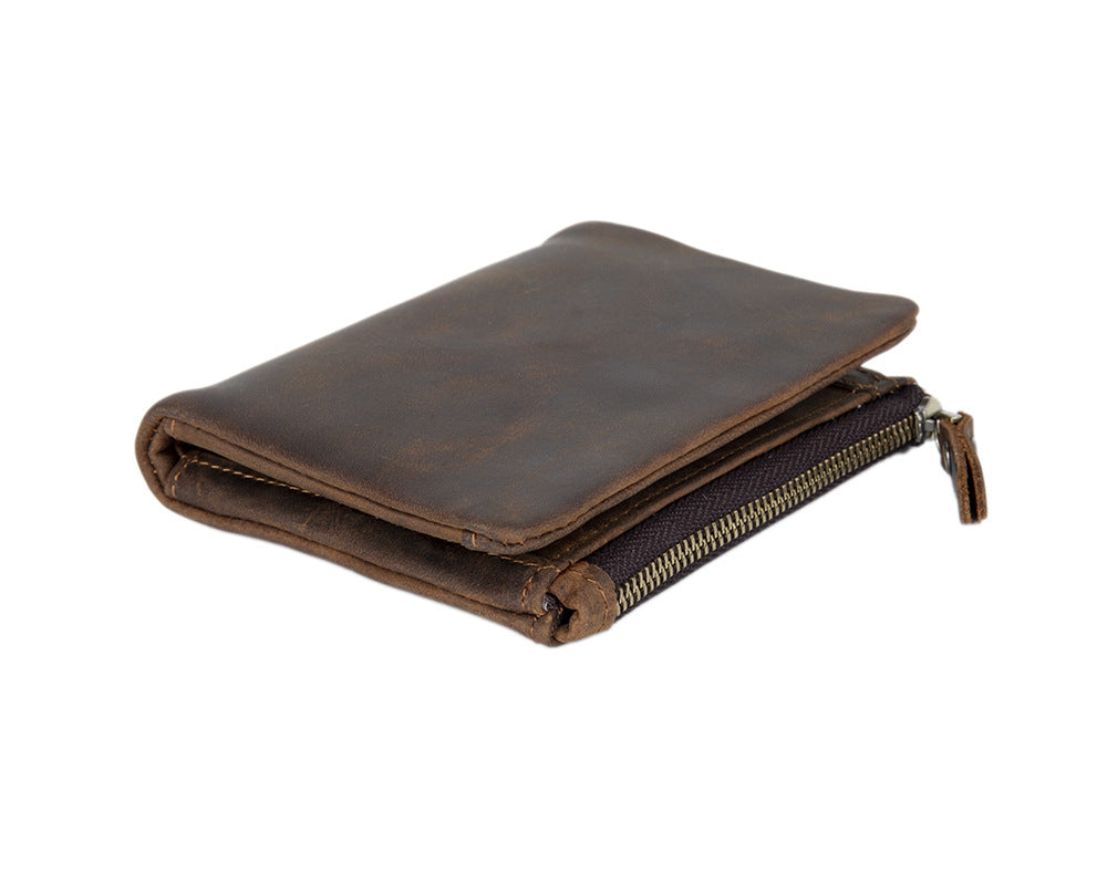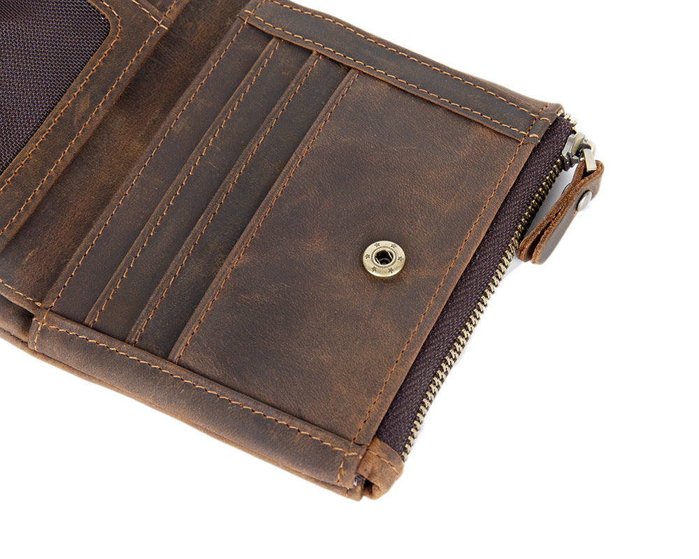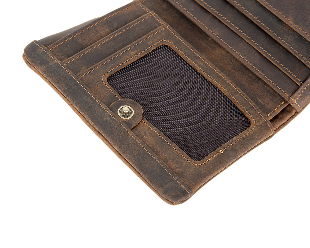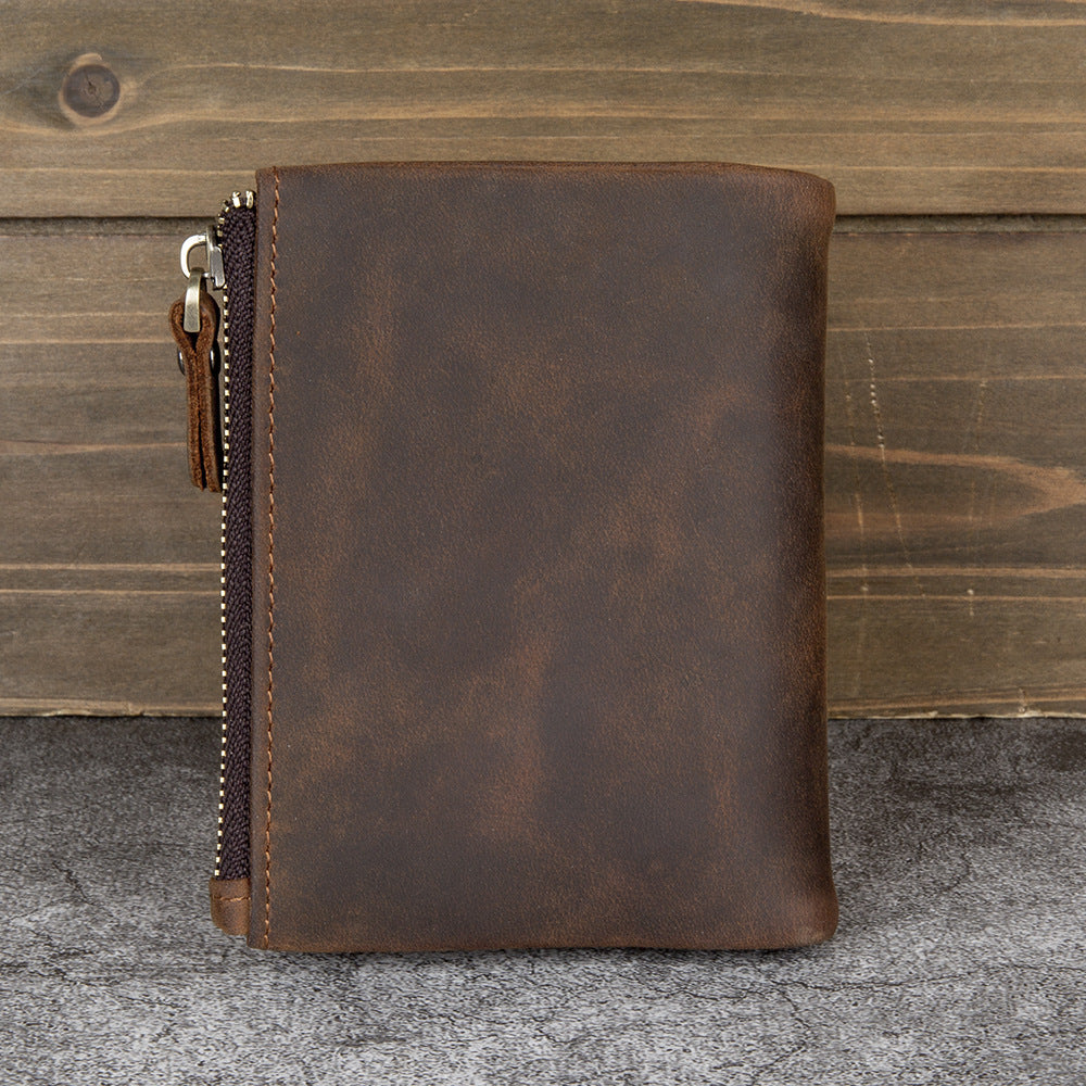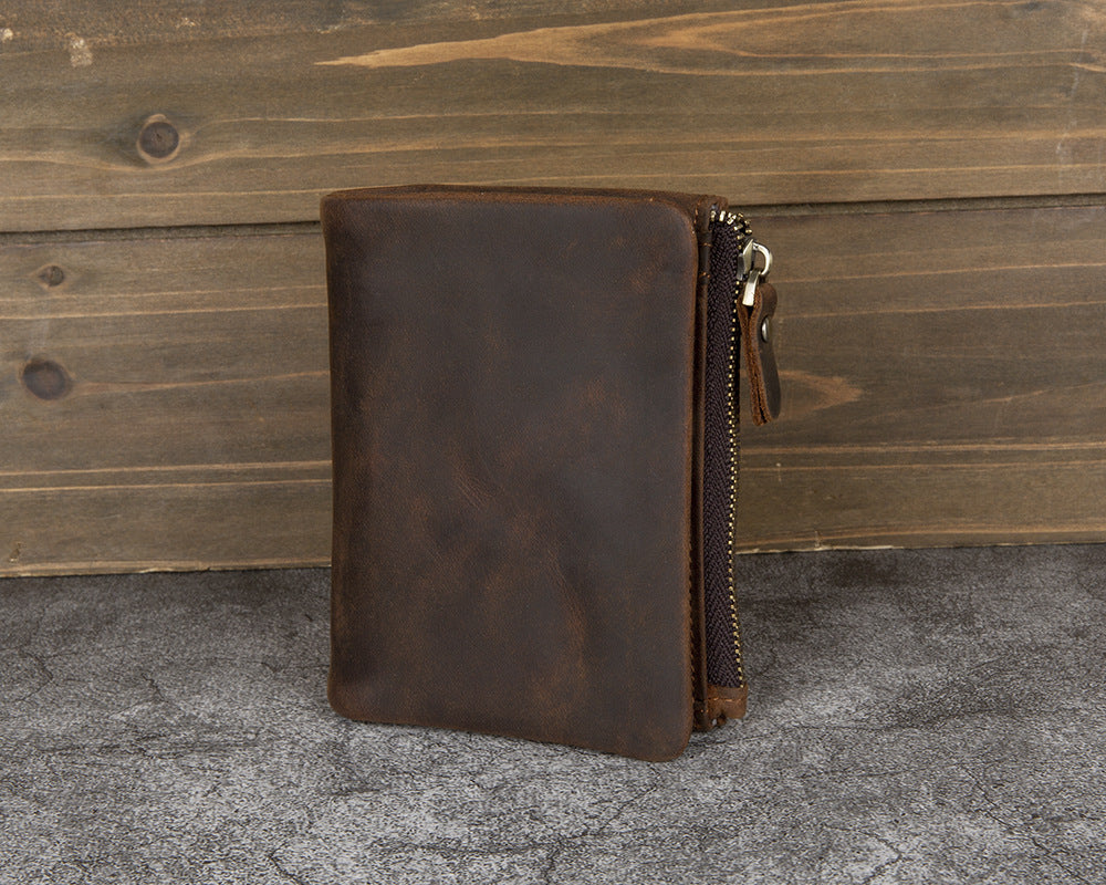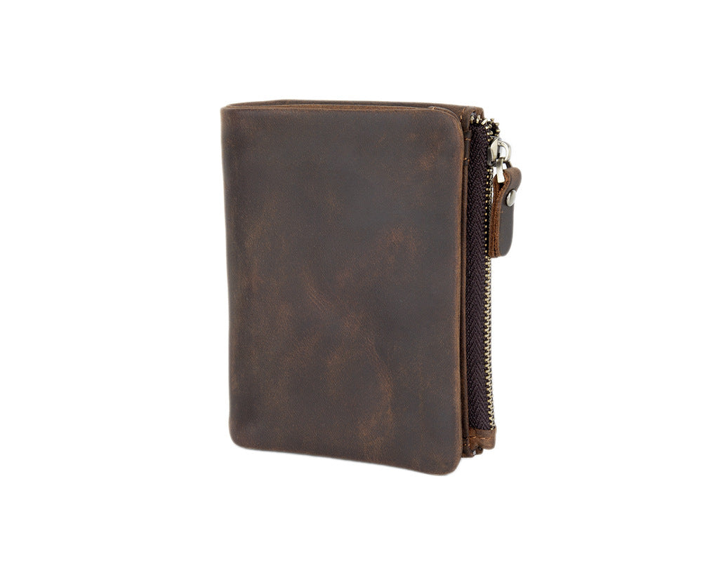 Men's Wallet with Coin Purse Billfold - Vintage Crazy Horse Leather