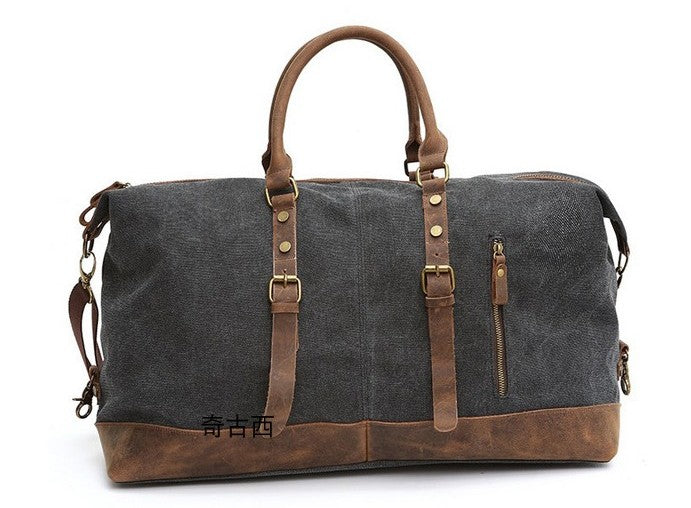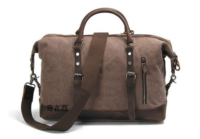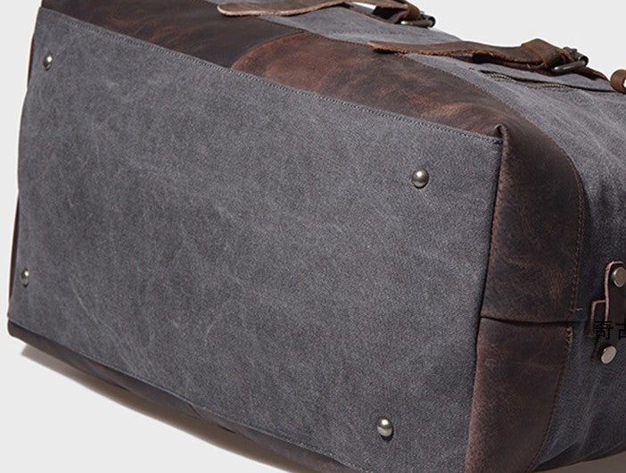 Style: Mens Waxed Canvas Leather Weekender Bag Canvas Overnight bag Travel Bag for Men