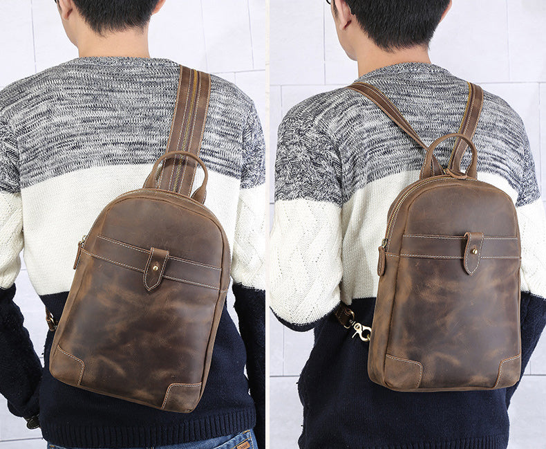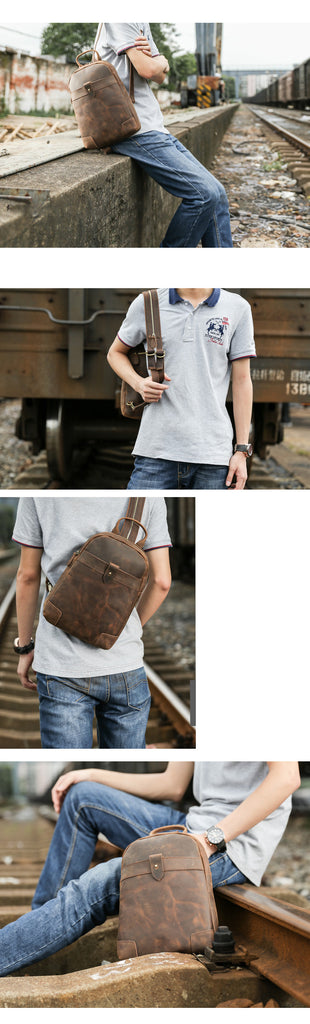Design: Vintage Brown Leather Men's Sling Bag Backpack Brown One Shoulder Backpack For MenOverview: