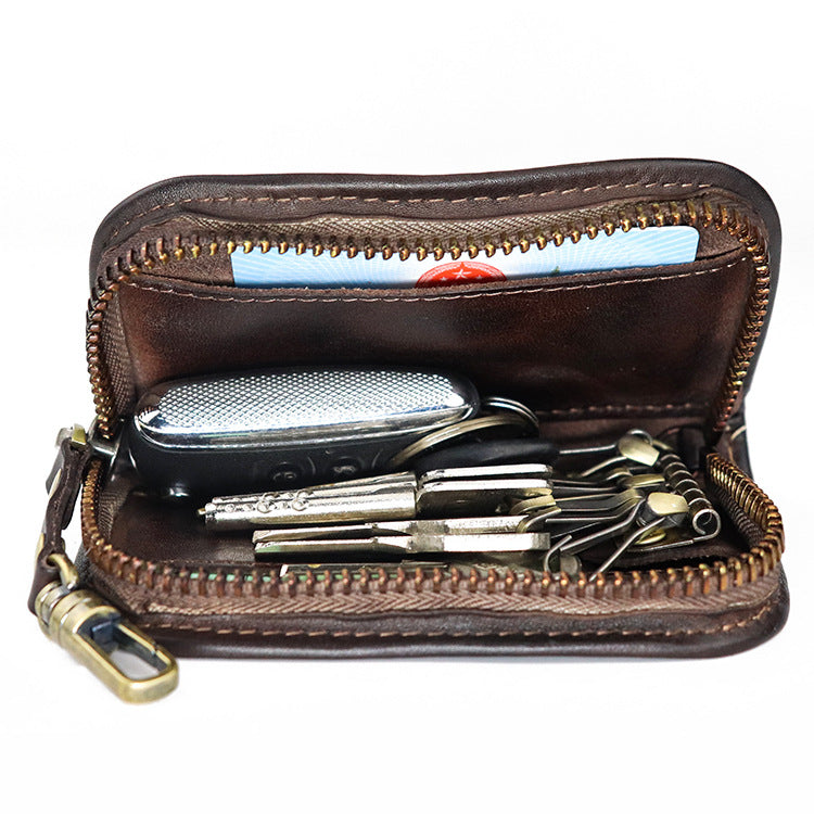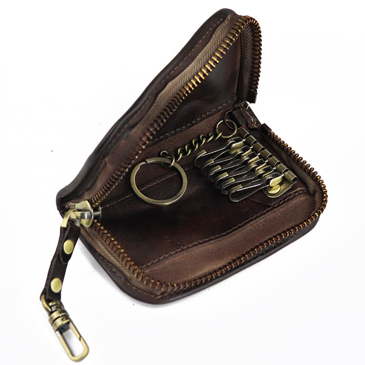 Style: Vintage Brown Leather Men's Car Key Wallet Black Key Zipper Wallet For Men