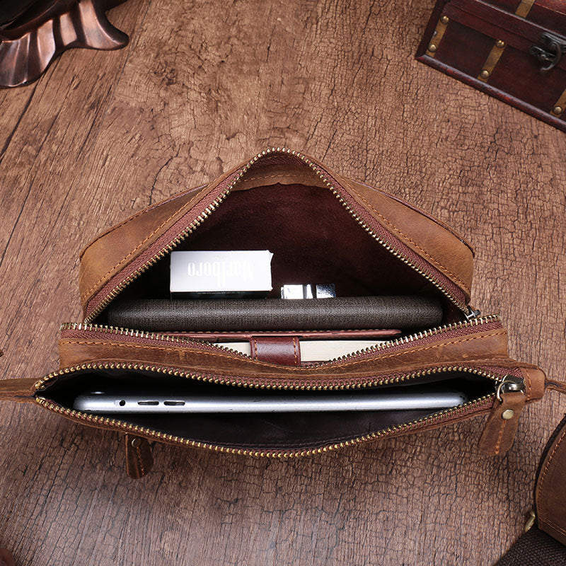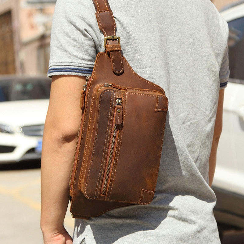 Style: Vintage Brown Leather Men's Fanny Pack Coffee Chest Bag Waist Bag For Men