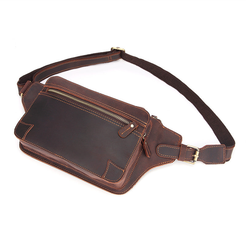 Design: Vintage Brown Leather Men's Fanny Pack Coffee Chest Bag Waist Bag For Men