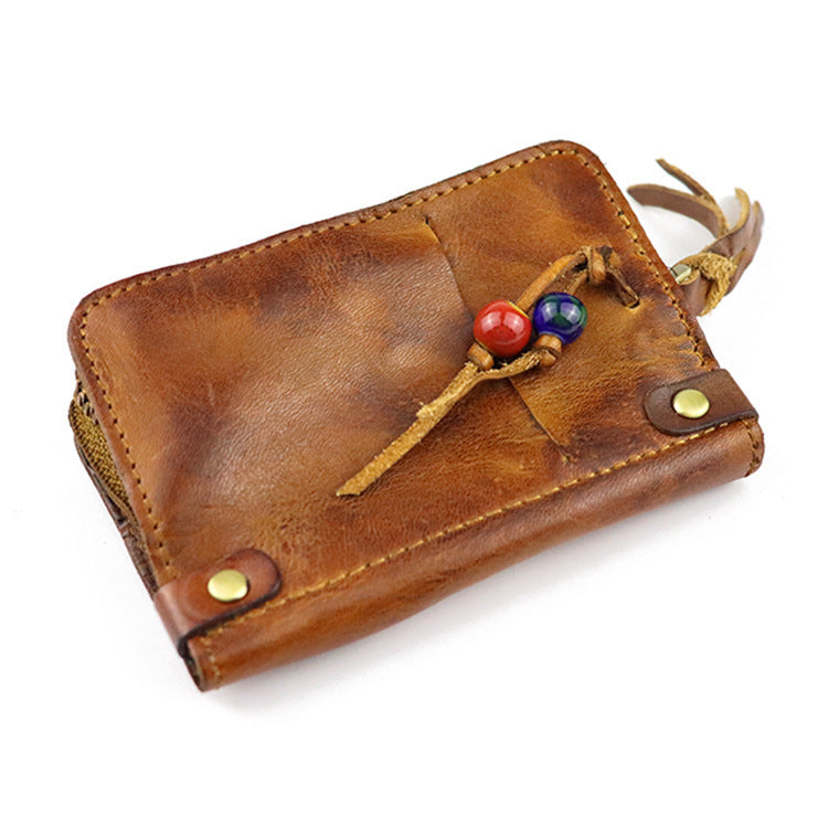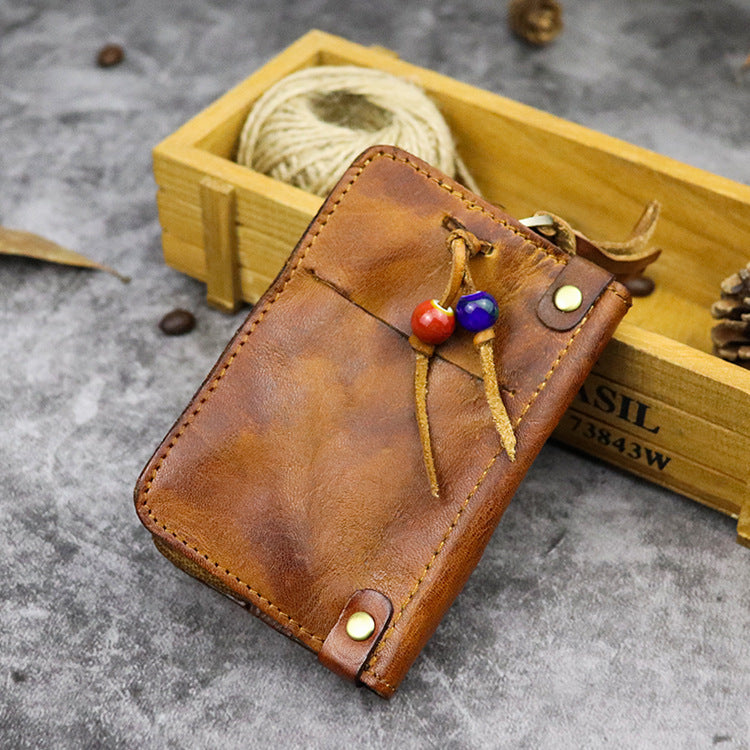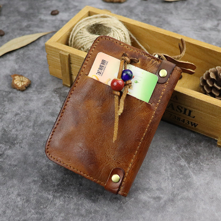 Style:Vintage Leather Men's billfold Small Wallet Brown Key Wallet Card Wallet For Men