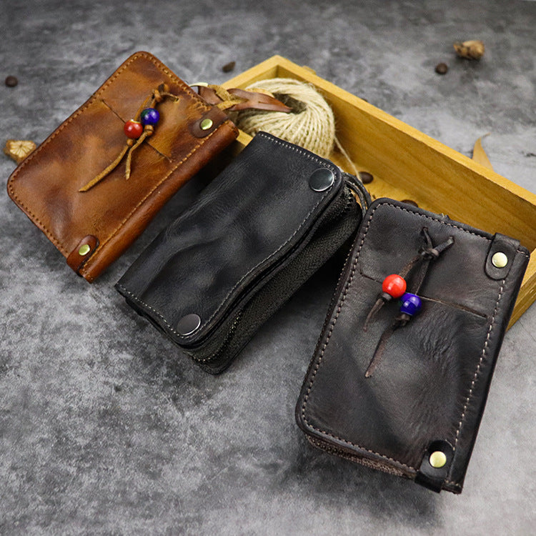 Design: Vintage Leather Men's billfold Small Wallet Brown Key Wallet Card Wallet For Men