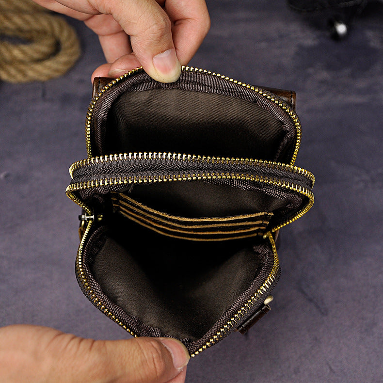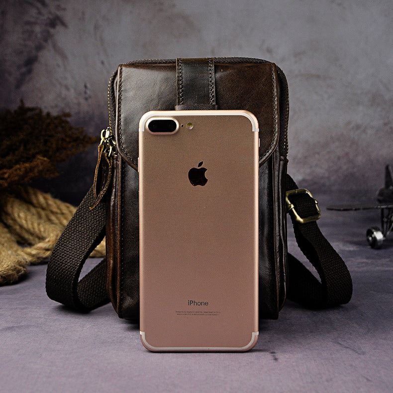 Style: Fashion Leather Men's Waist Bag Cell Phone Holsters Brown Mini Side Bag For Men
