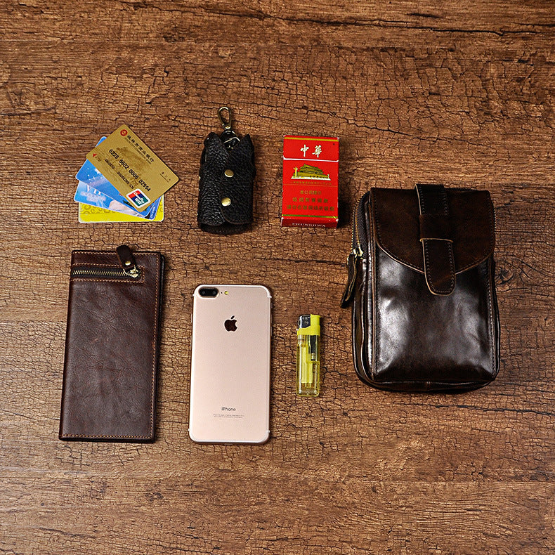 Design: Fashion Leather Men's Waist Bag Cell Phone Holsters Brown Mini Side Bag For Men
