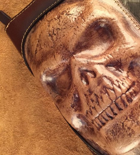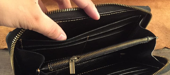 Style: Handmade Genuine Leather Mens Clutch Cool Long Wallet Skull Zipper Clutch Wristlet Wallet for Men