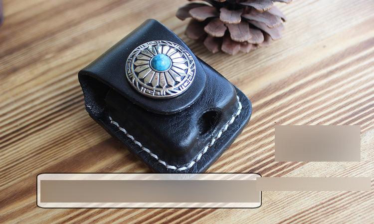 Design:?Handmade Mens Black Leather Zippo Lighter Case Belt Zippo Lighter Holder with Belt Clip