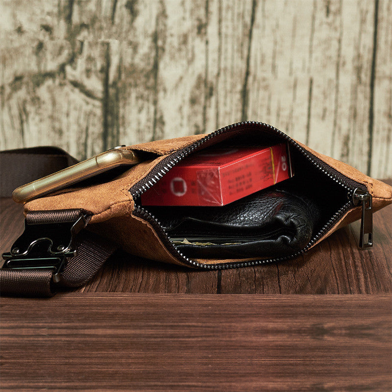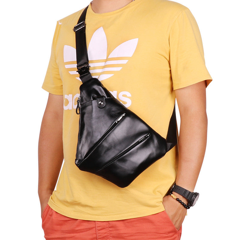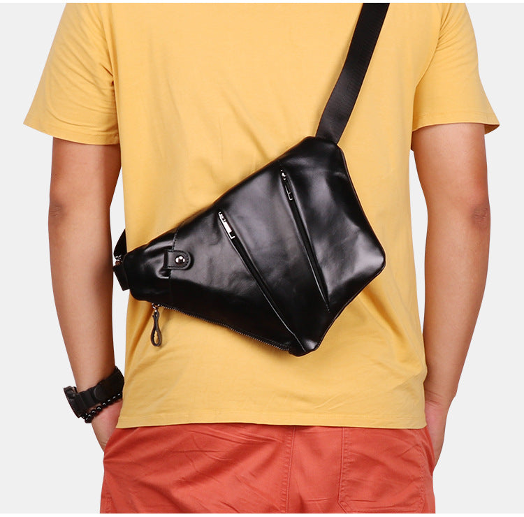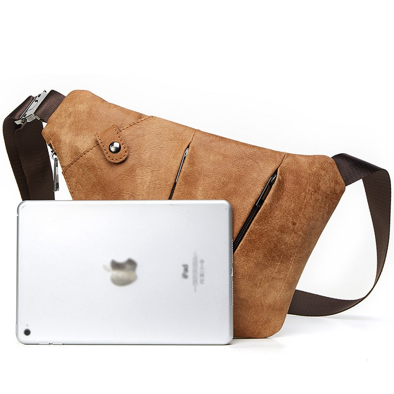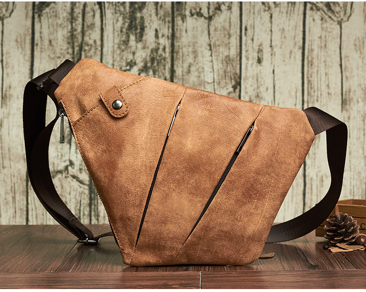 Design: Cool Leather Brown Men's Sling Bag Chest Bag Black Crossbody Backpack For Men