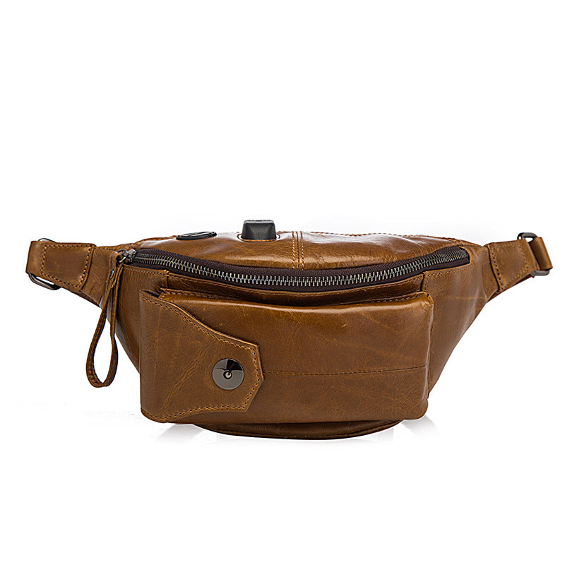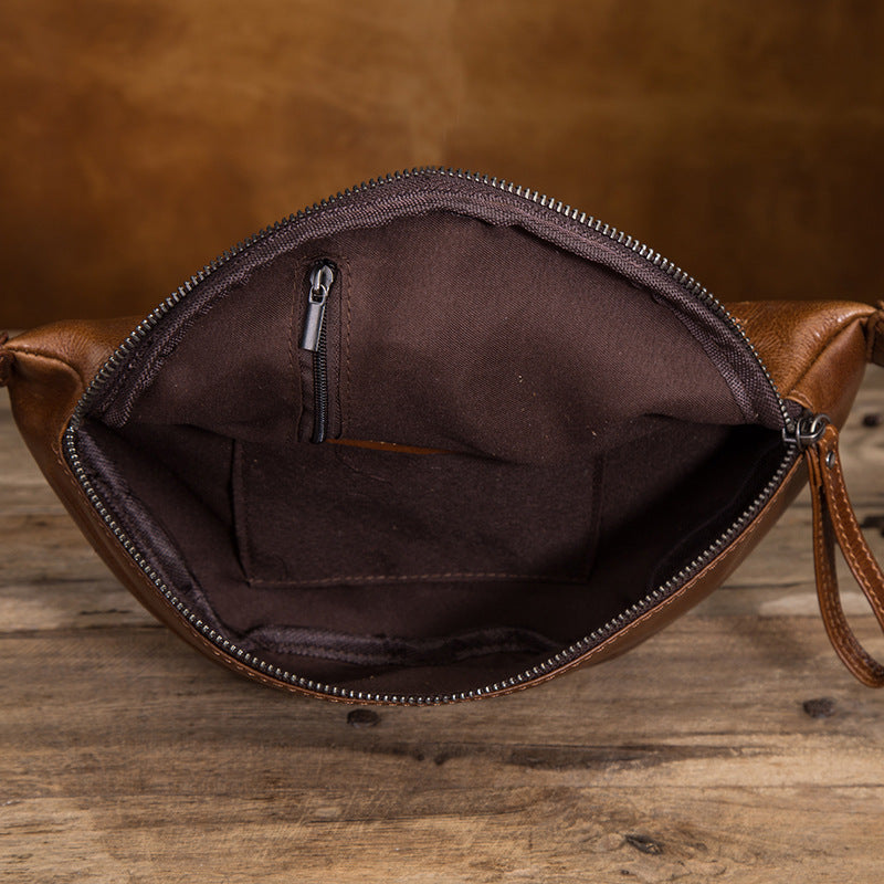 Style: Vintage Brown Leather Men's Fanny Packs Hip Pack Waist Bag For Men