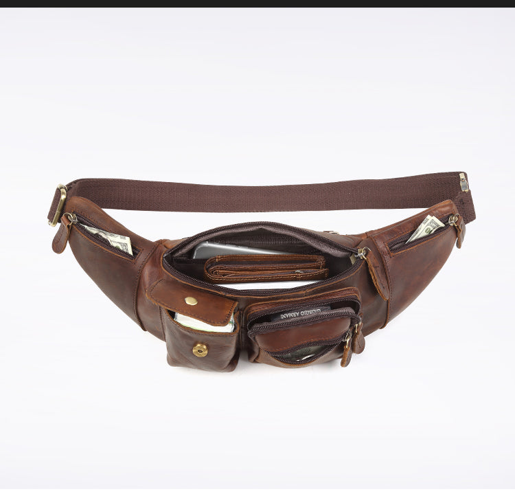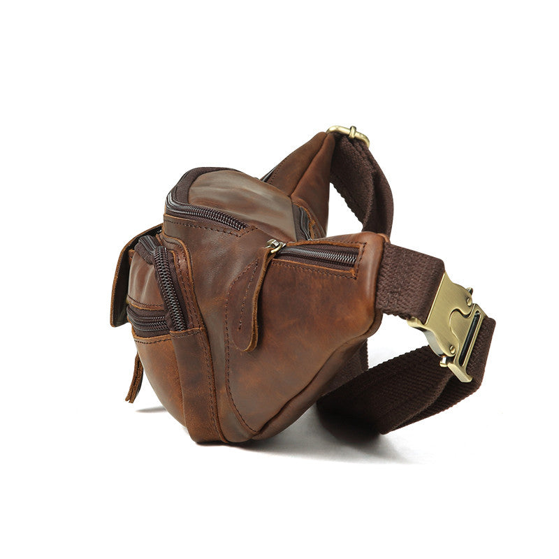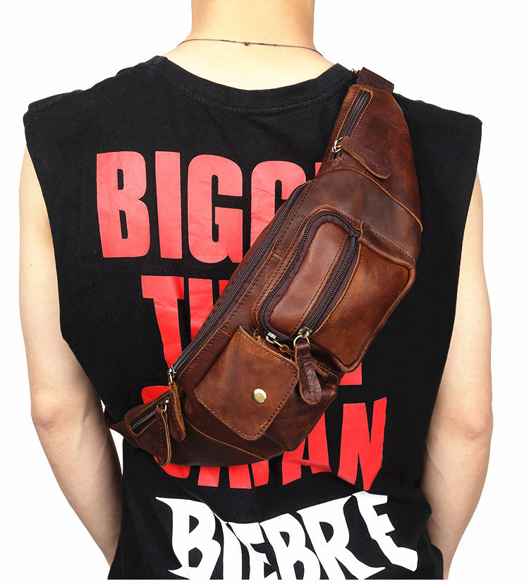 Style: Vintage Brown Leather Men's Waist Bag Fanny Pack Hip Pack For Men
