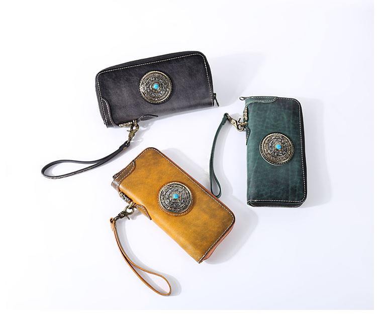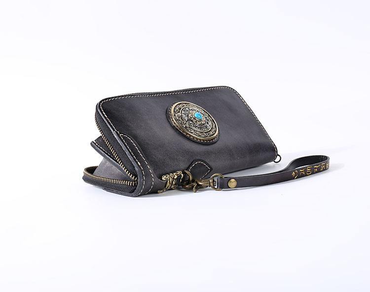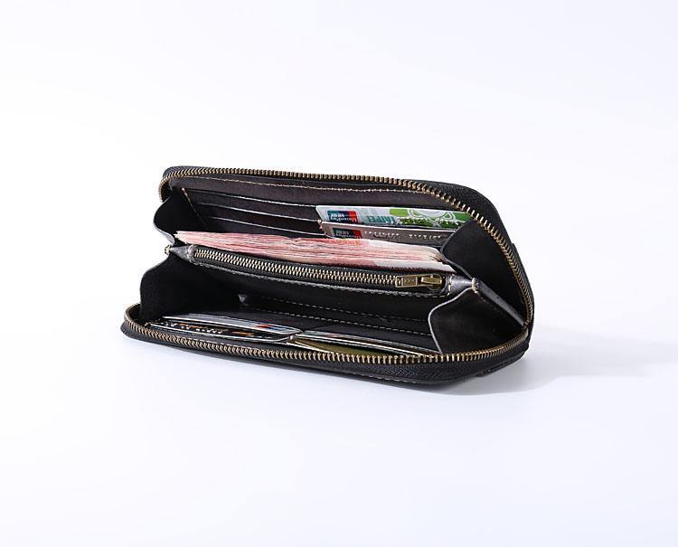 Design: Original Style Genuine Leather Mens Long Leather Phone Wallet Zipper Clutch Wallet for Men