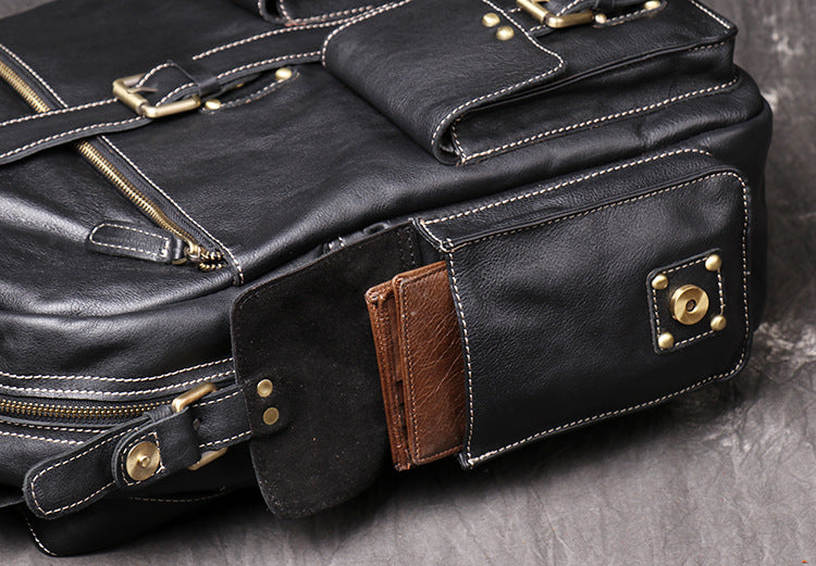 Design: Cool Leather Mens 15inch Computer Bag Satchel Backpacks Travel Backpack Backpack for MenOverview: