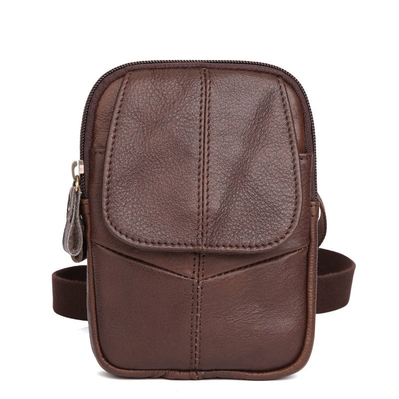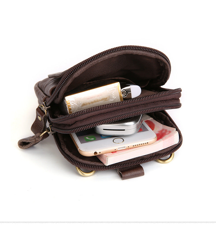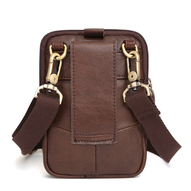 Design: Vintage Brown Leather Men's Belt Pouch Cell Phone Holster Mini Side Bag For Men