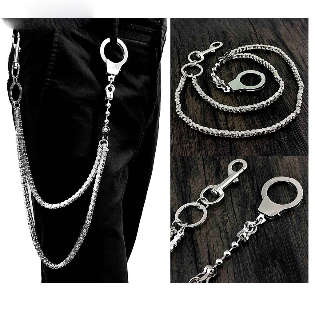 Design: Badass Silver Mens Double Bike Chain Pants Chain Wallet Chain Biker Wallet Chain For Men