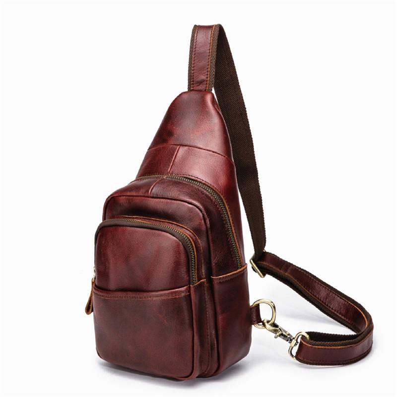 Style: BRed Brown Cool LEATHER MENS 8 inches Sling Bag One Shoulder Backpack Brown Chest Bag For Men