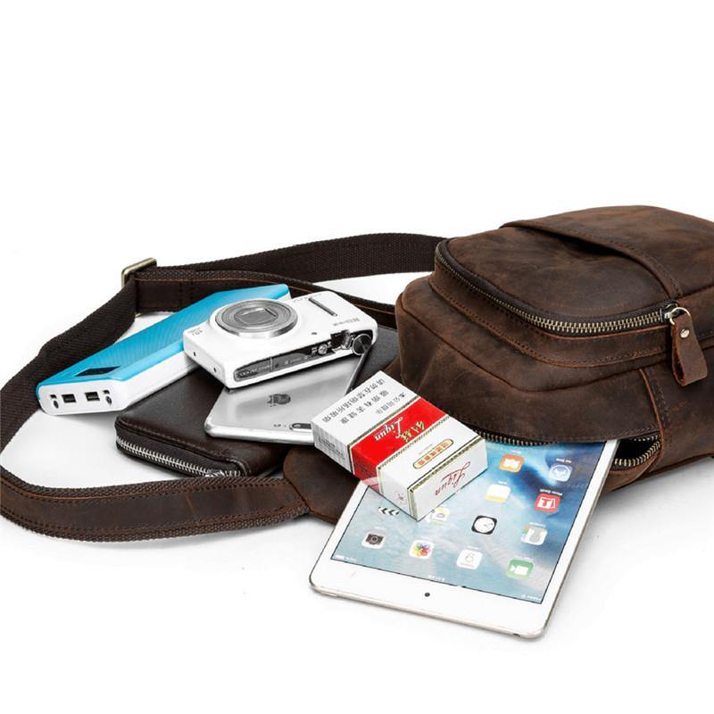 Design: Red Brown Cool LEATHER MENS 8 inches Sling Bag One Shoulder Backpack Brown Chest Bag For Men