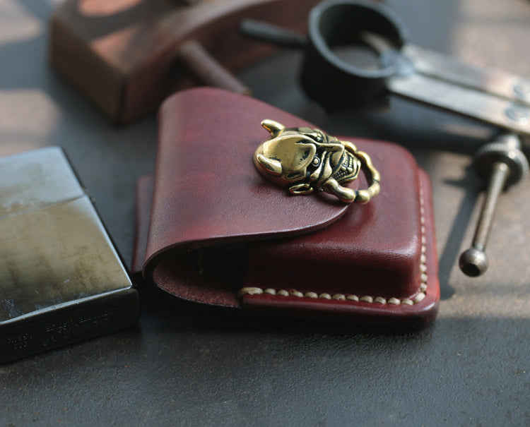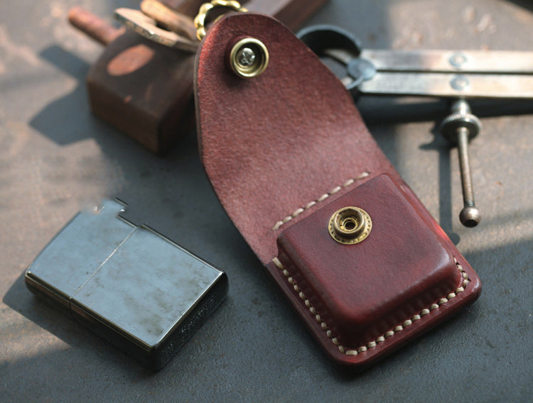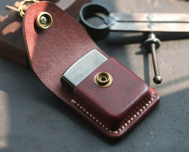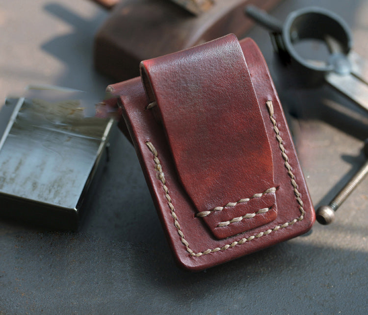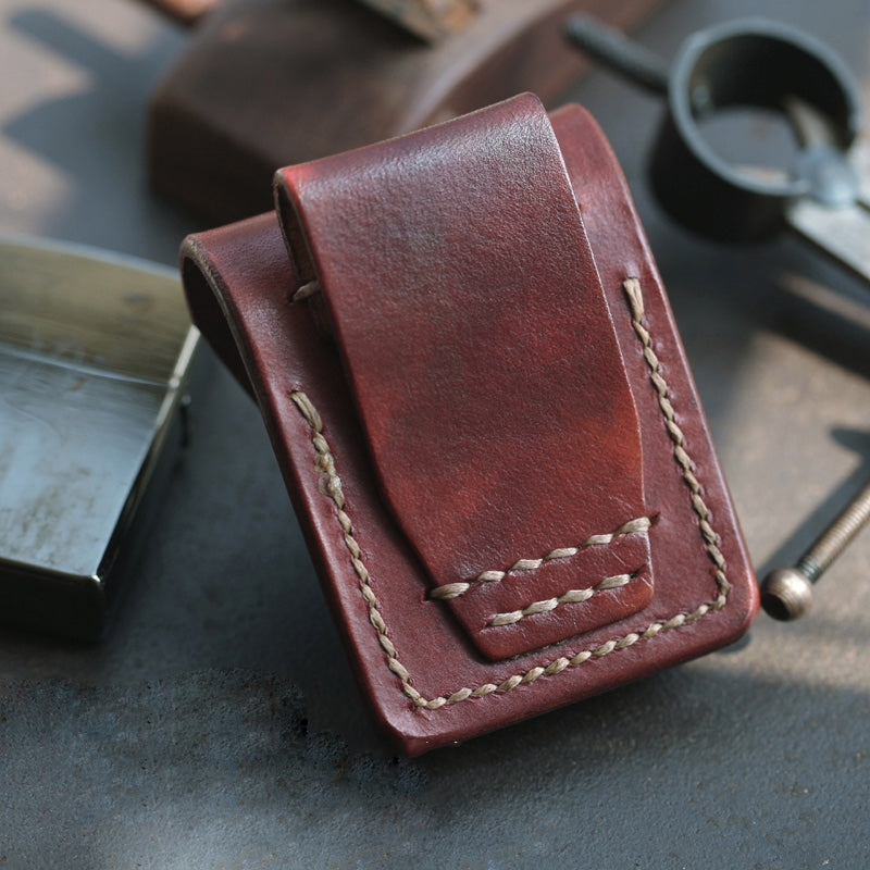 Style: Red Brown Genuine Handmade Leather Mens Lighter Case With Belt Loop Cool Standard Lighter Holders For Men
