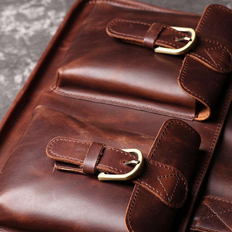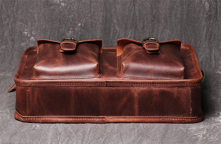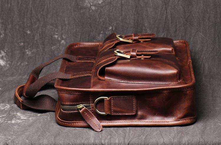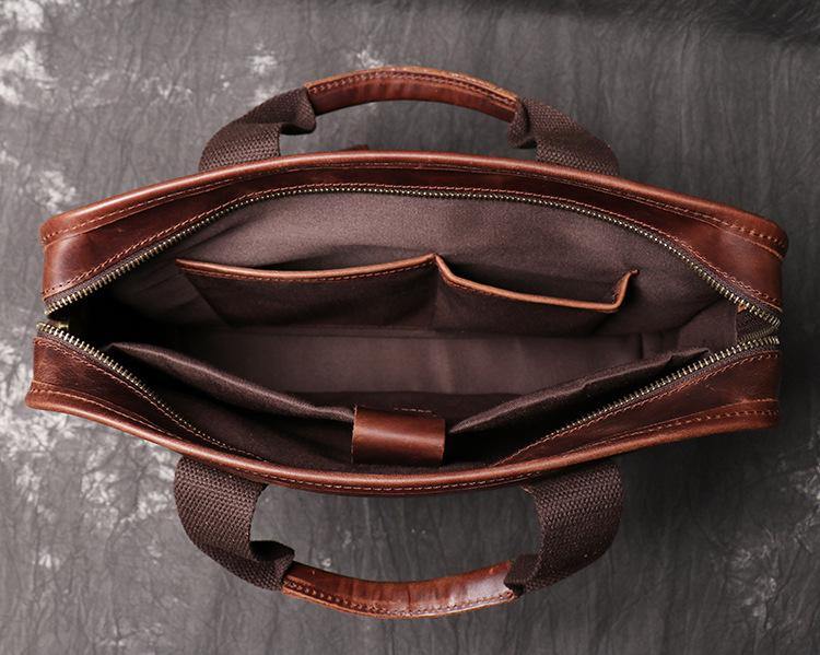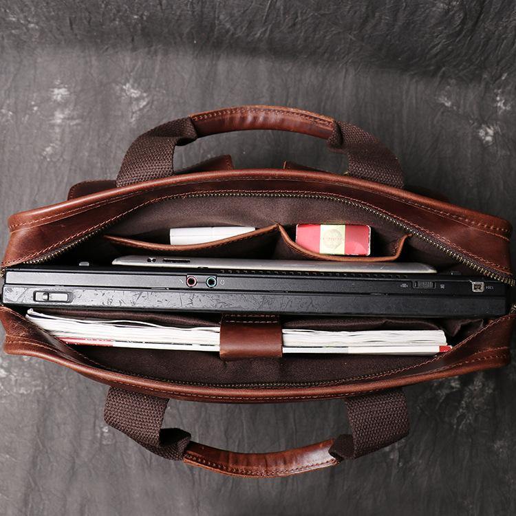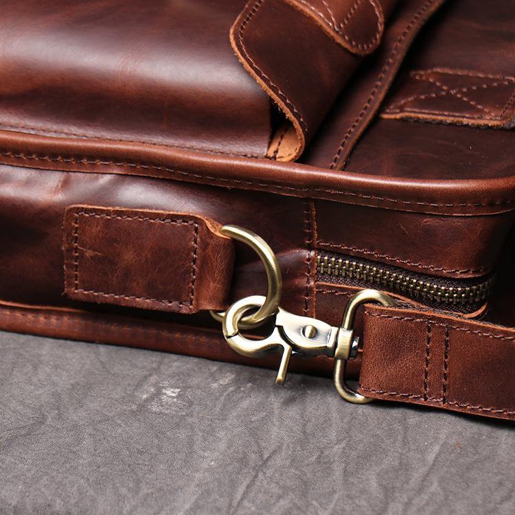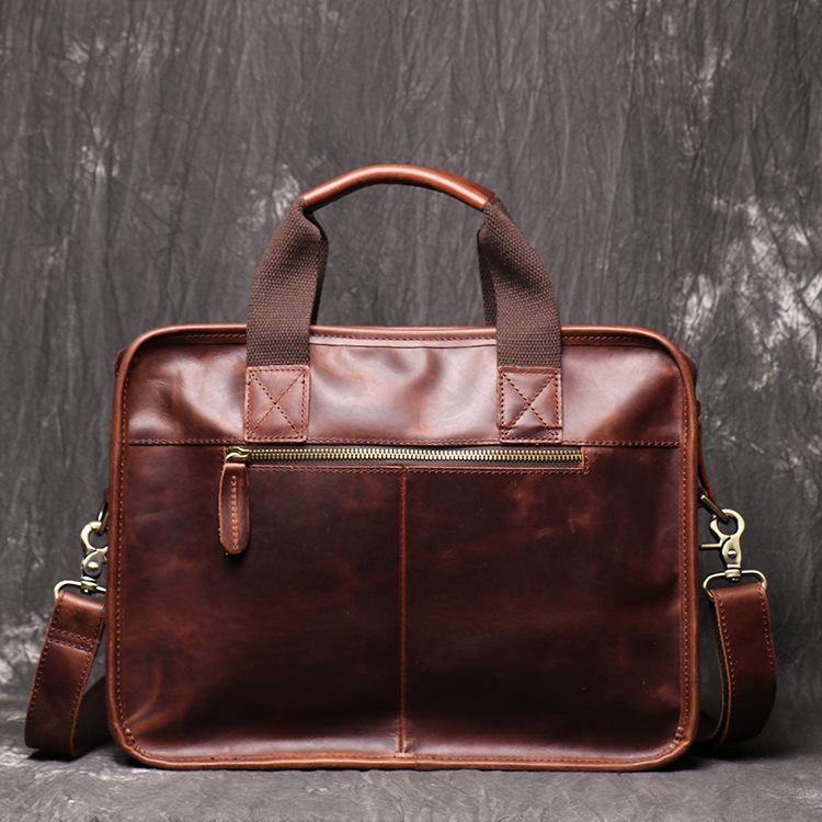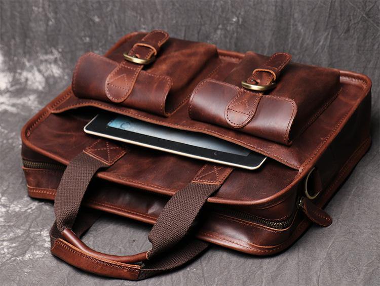 Design: Red Brown Leather Mens 14 inches Large Laptop Work Bag Handbag Briefcase Shoulder Bags Business Bags For MenOverview: